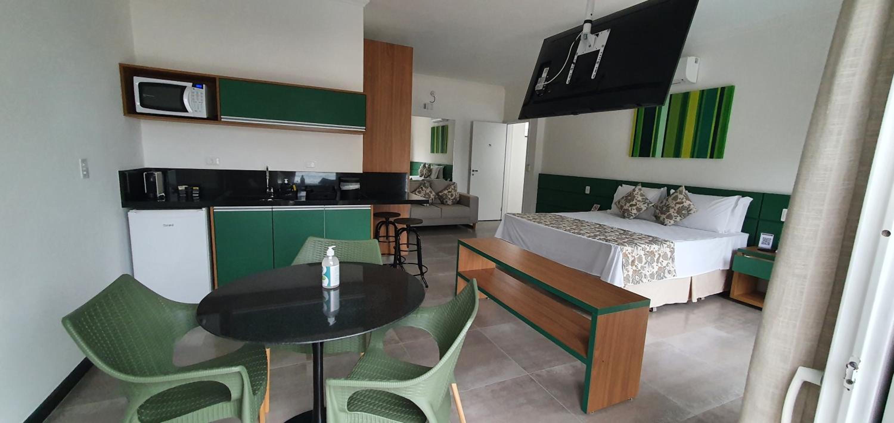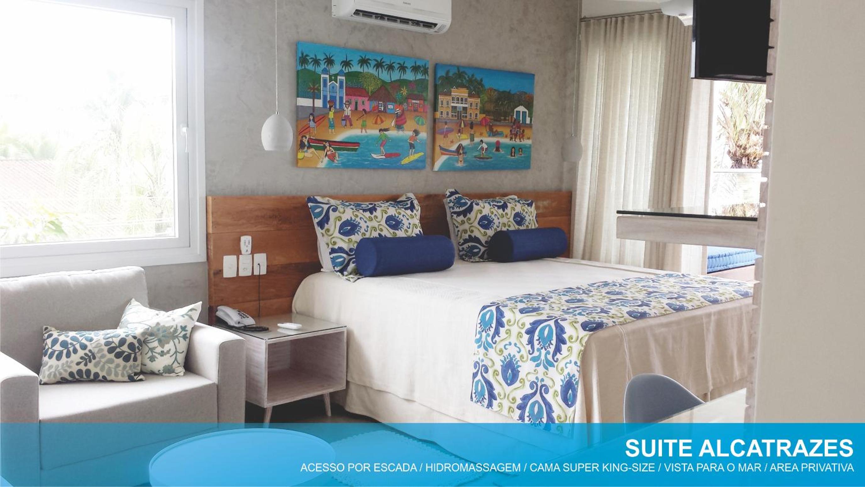 Juquei Frente ao Mar Hotel Pousada offers beautifully furnished rooms with modern amenities including flat-screen TVs, air conditioning, and private balconies in select rooms.