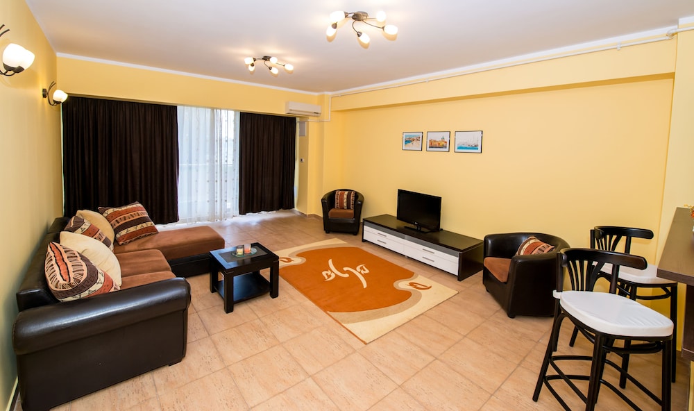 The place is a two-room, fully equipped, luxurious apartment in what appears to be a new building. It is shining clean and well kept. It has a generous balcony to see the sea by looking to the left. It is located next to the bus to Constanta station and within a few minutes walks to Mamaia beach and walkway, plenty of restaurants, clubs and fun places. The host is very kind and helpful so the check-in was a breeze. All these at a price that was much lower than all similar places in the area. Awesome!