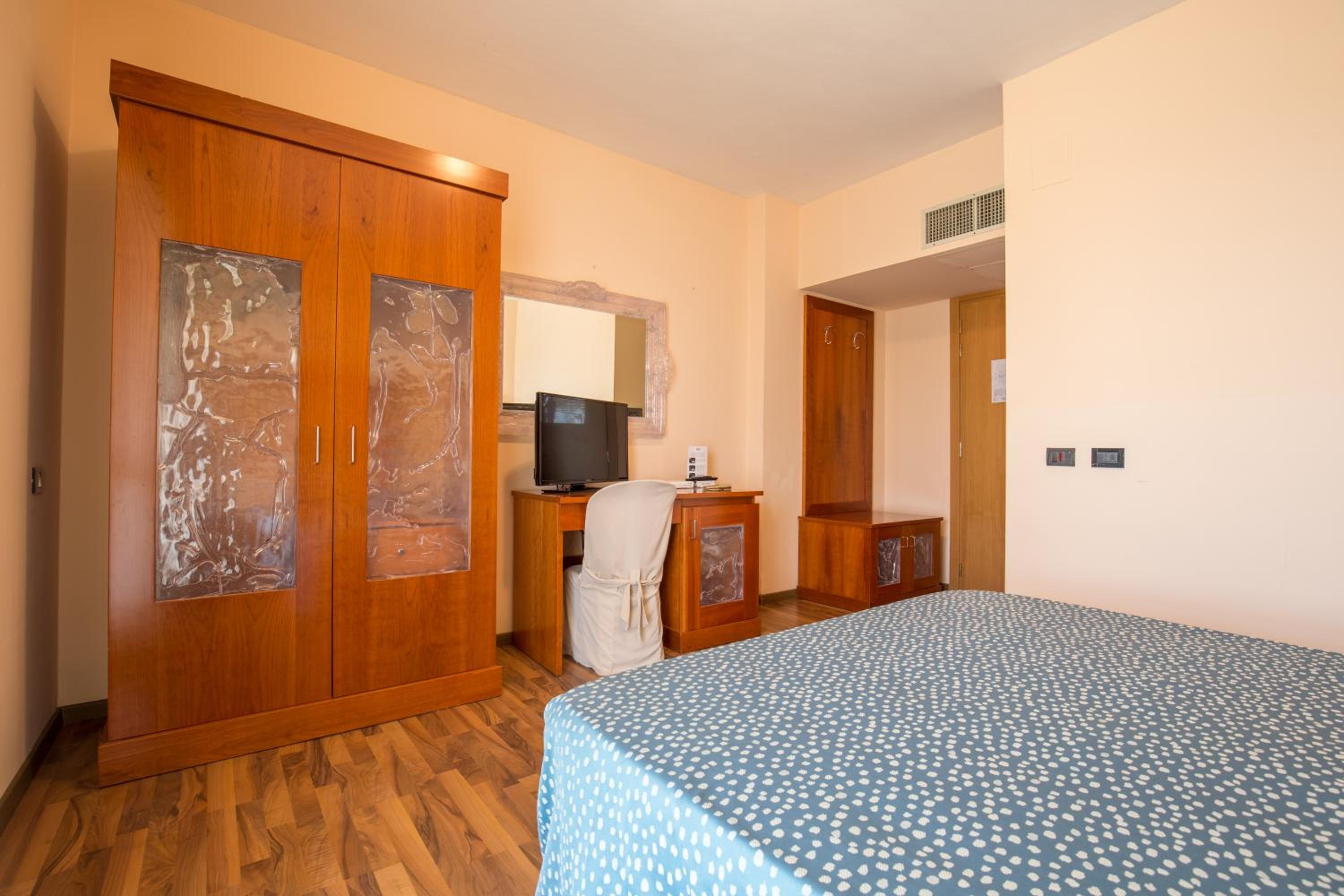 Camera old stile, presa elettrica sx del letto non funzionante, mancanza di manutenzione in genere sotto la camera cappa aspirazione cucina rumorosissima