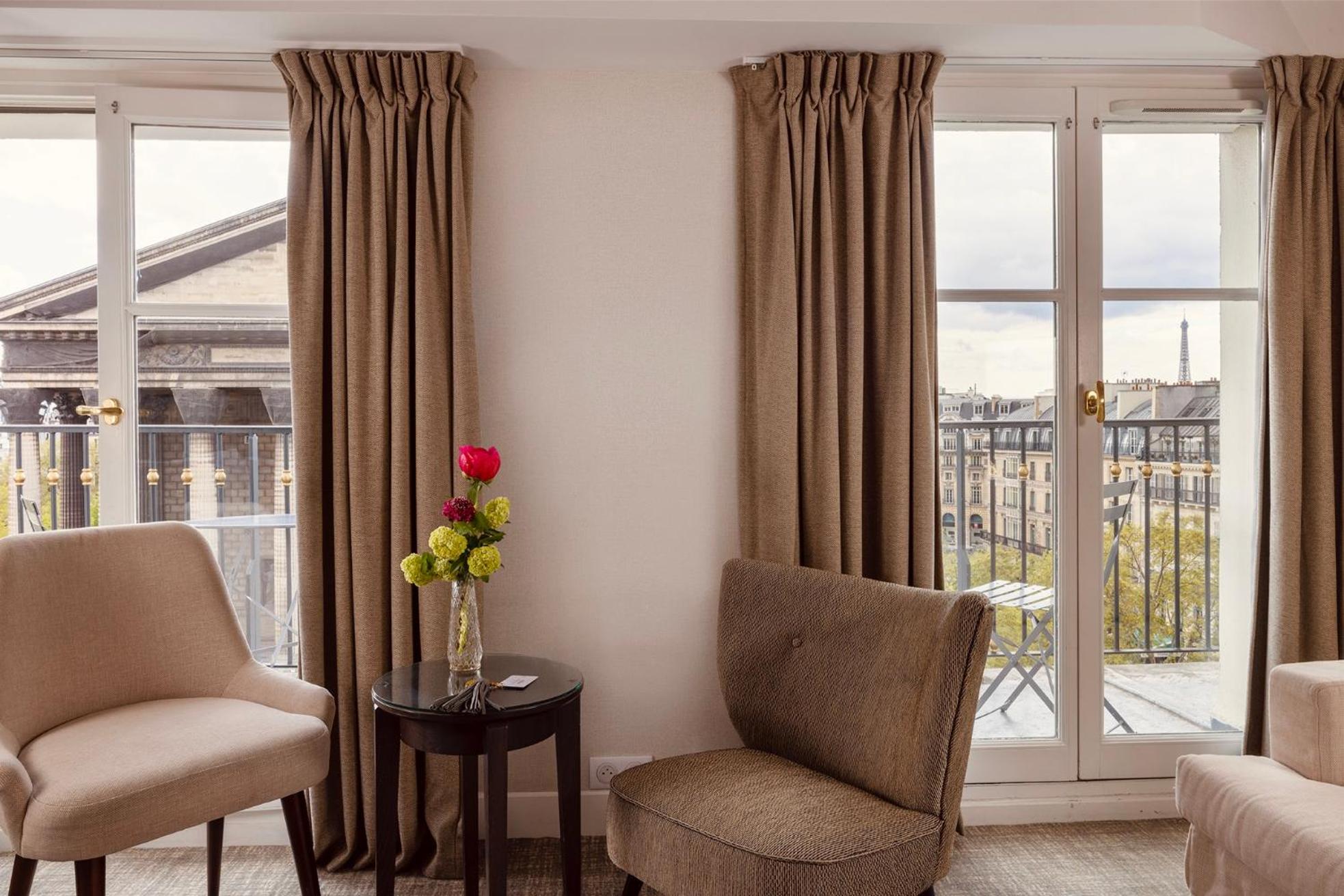 Hotel Madeleine Plaza offers a luxurious stay in a stunning Haussmannian building, conveniently located opposite the iconic Madeleine Church in the upscale 8th district of Paris.