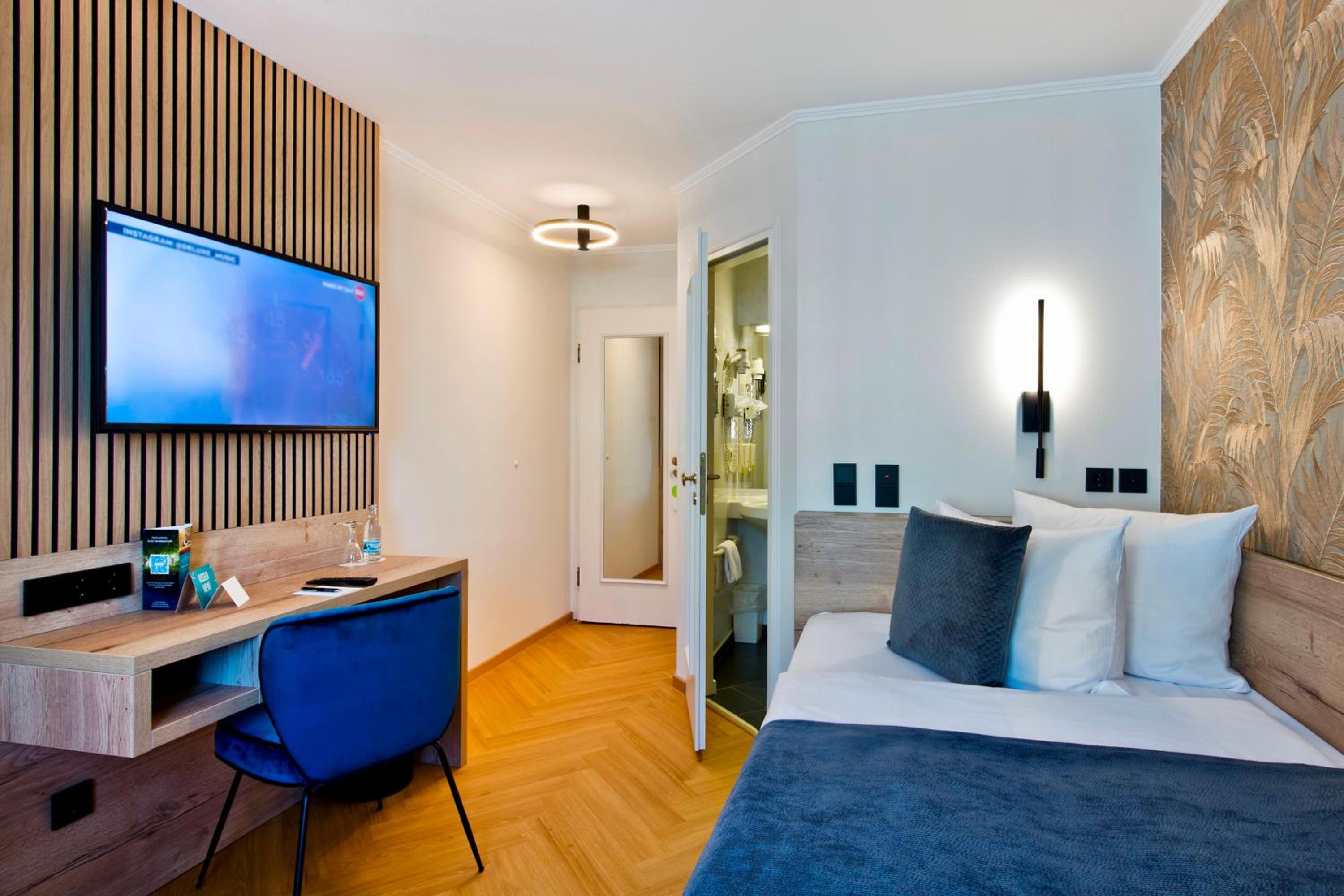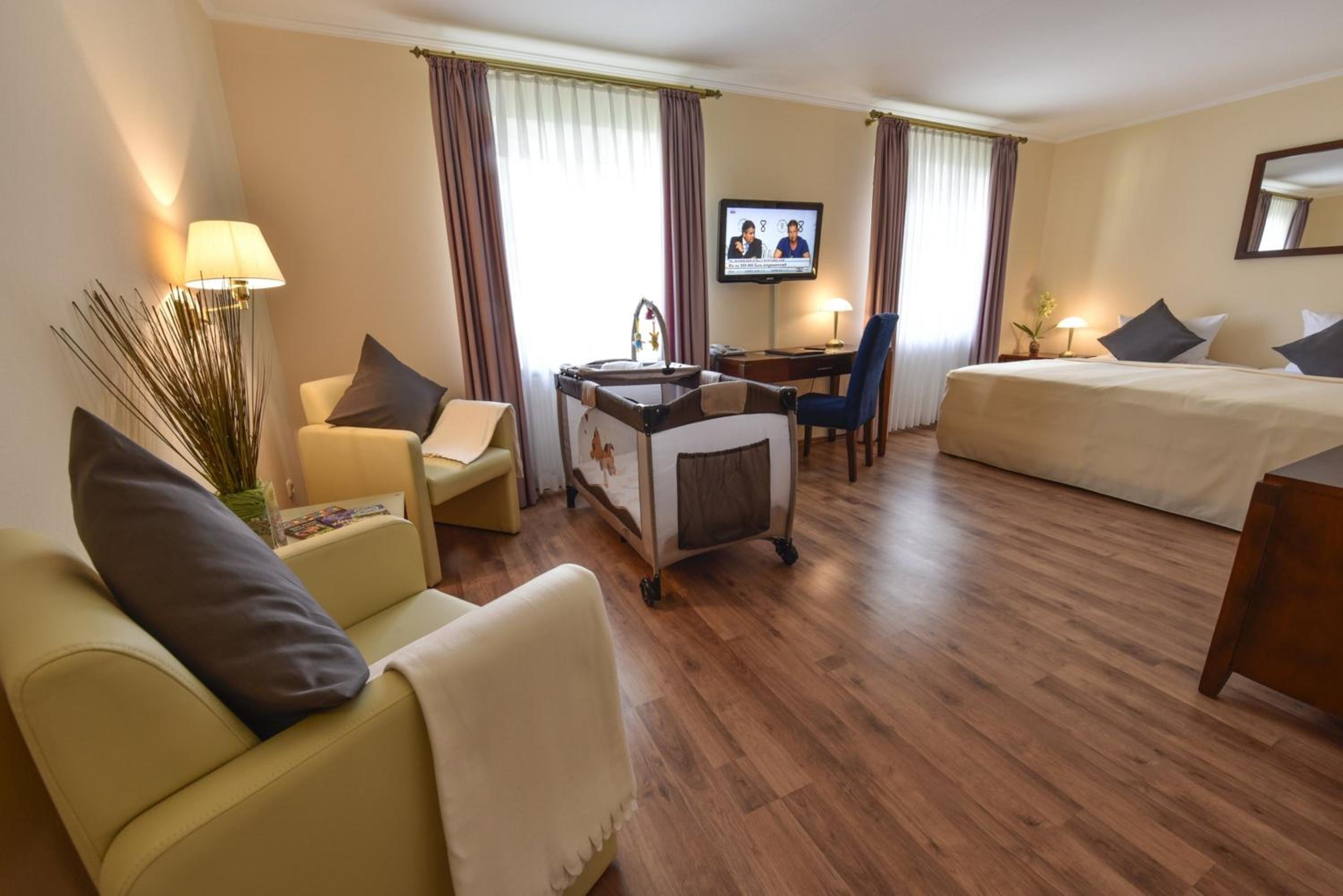 Ich hatte ein Einzelzimmer gebucht und war positiv überrascht. Wirklich komfortabel eingerichtet und auch das Bett war sehr gemütlich. Wir haben abends im Restaurant gegessen, die Auswahl war wirklich gut, das Essen top und auch preislich akzeptabel. Ich war nur für eine Nacht vor Ort, würde aber nach der kurzen Zeit das Hotel empfehlen.