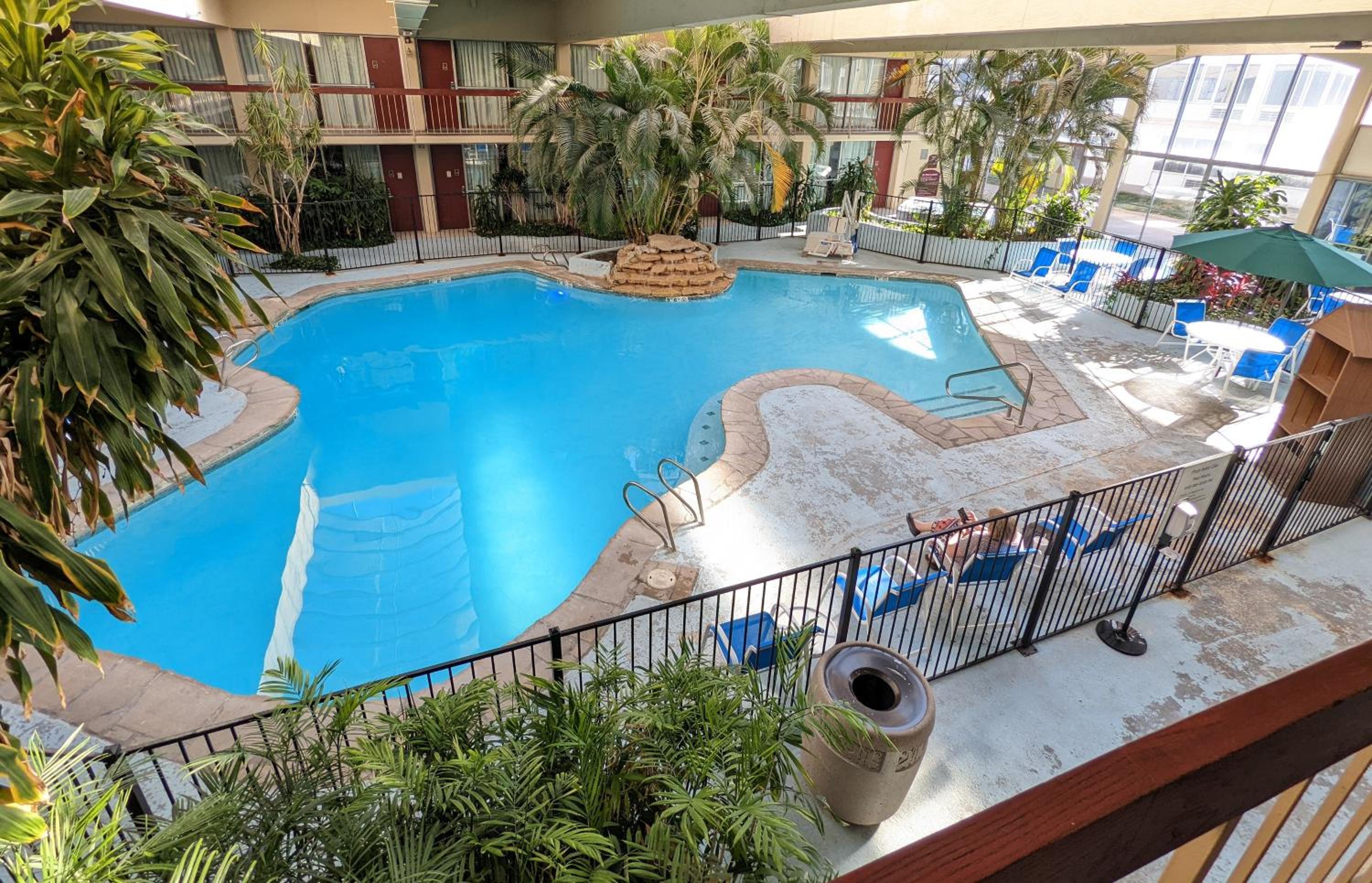 The area is full of crackheads and prostitutes. Some of them stay at the hotel. Don't feel safe about my vehicle in the parking lot. Or kids in the pool. There was a lot of people in the pool. It was too crowded so we never swam.