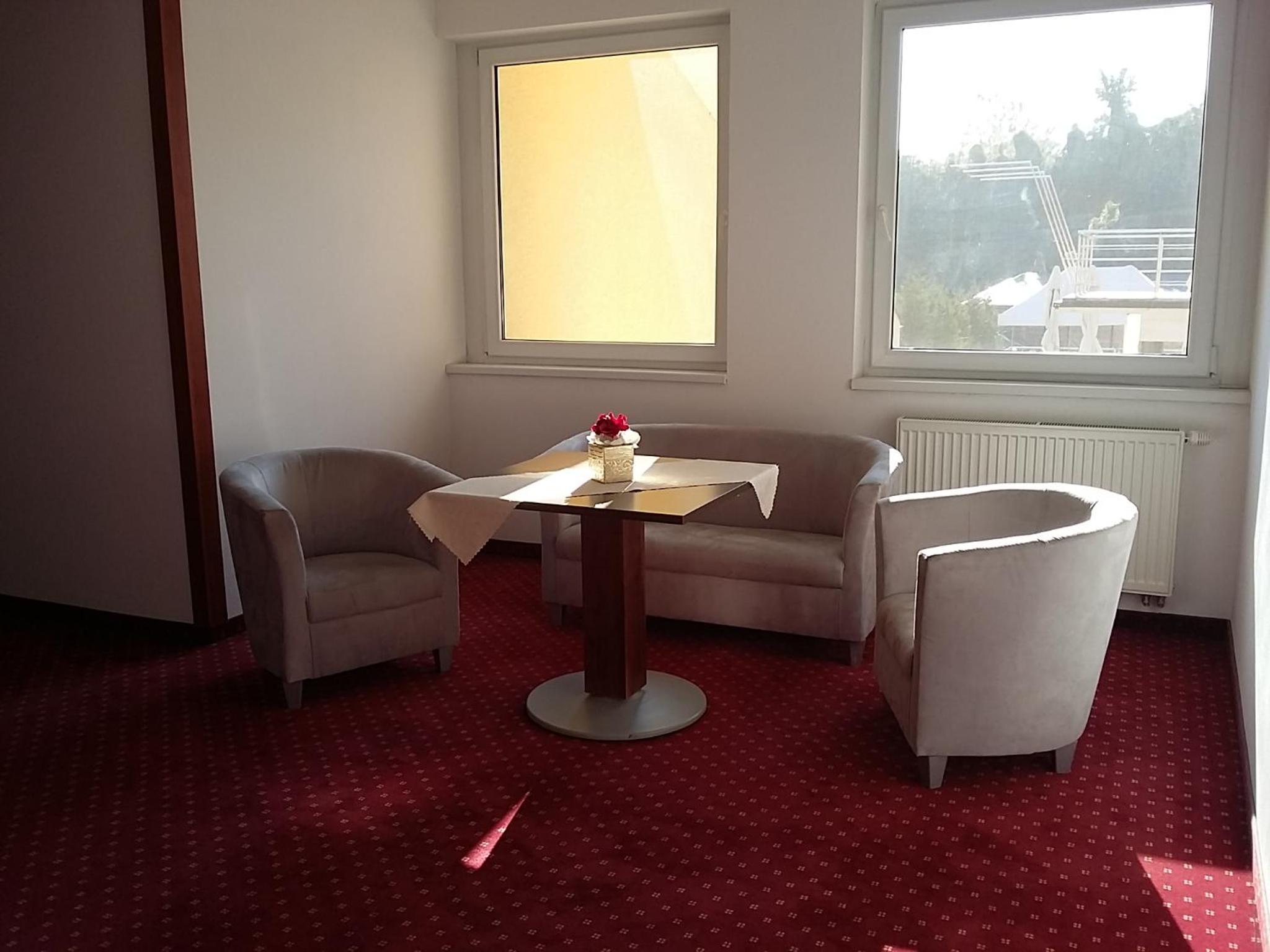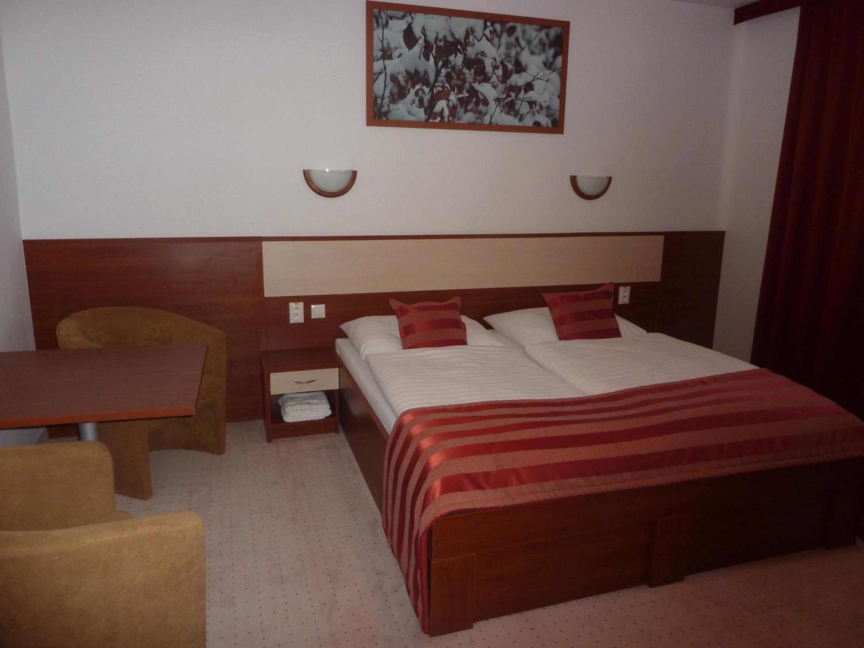 Hotel Auto Jas in Nitra offers a sophisticated stay with monitored parking, a restaurant serving Slovak delicacies and international cuisine, and a charming summer terrace. Enjoy various sports facilities such as bowling, table tennis, and tennis, along with a relaxation center including a sauna and massage services.