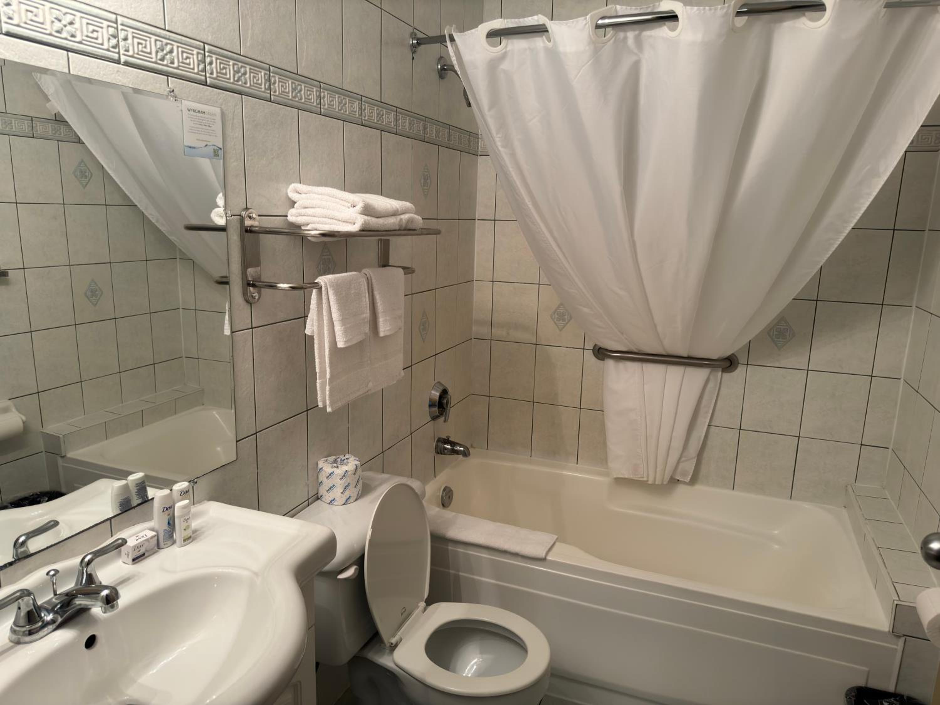 bathroom was gross, orange grout (which i had to purchase cleaning products myself to clean for my daughter to have a bath, which then became white), no toilet paper on arrival. I was also given a wrong room as I requested 2 beds and got a king instead.
