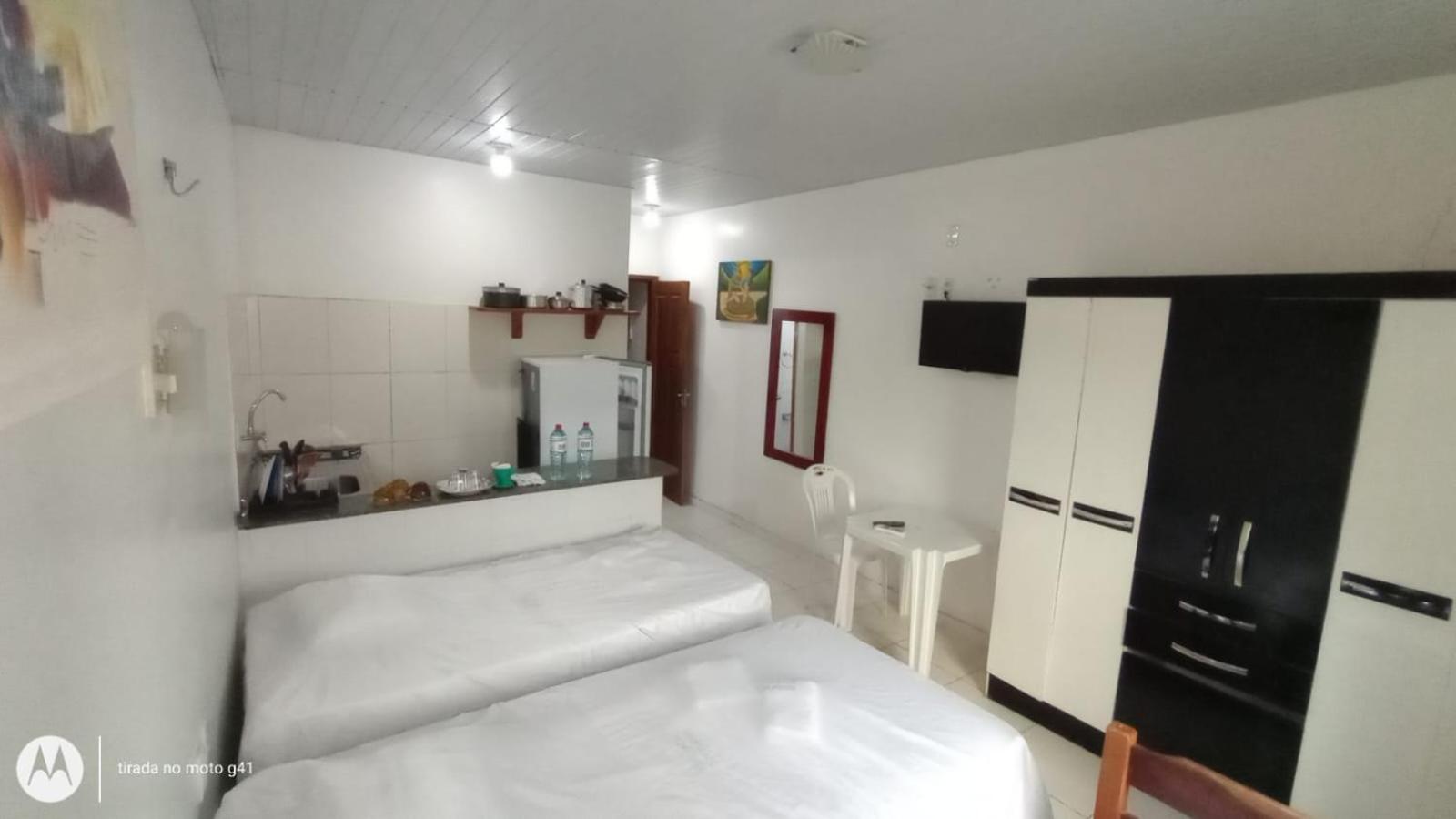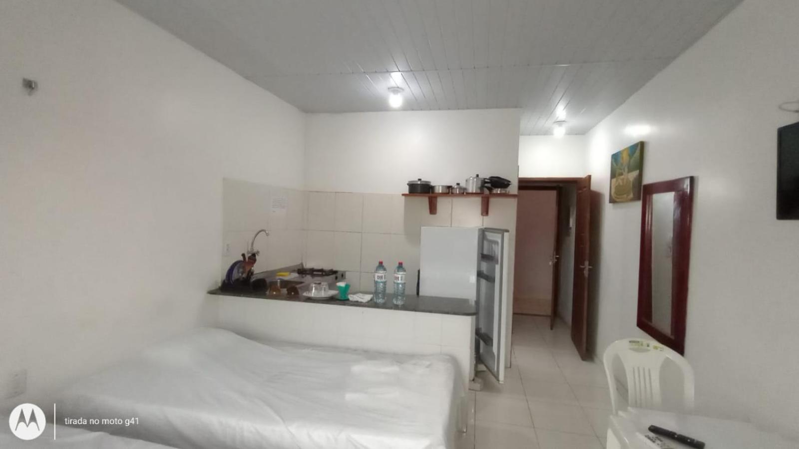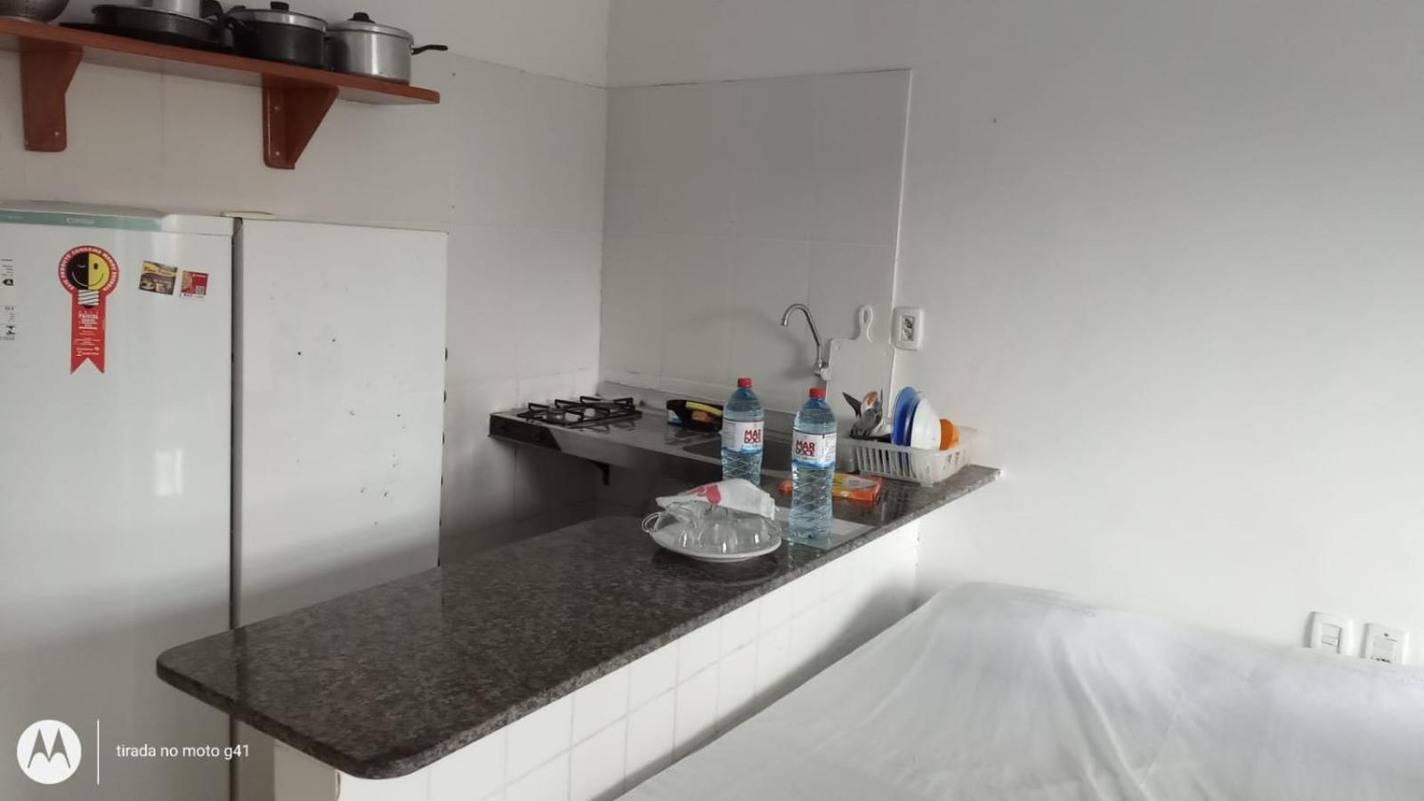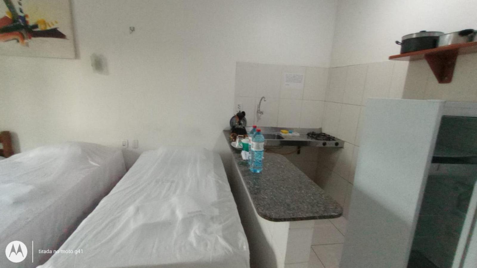 Convenient Amenities: The air-conditioned studios at Residencial Dom Fernando offer a comfortable stay with a TV, private bathroom, and a well-equipped kitchenette.