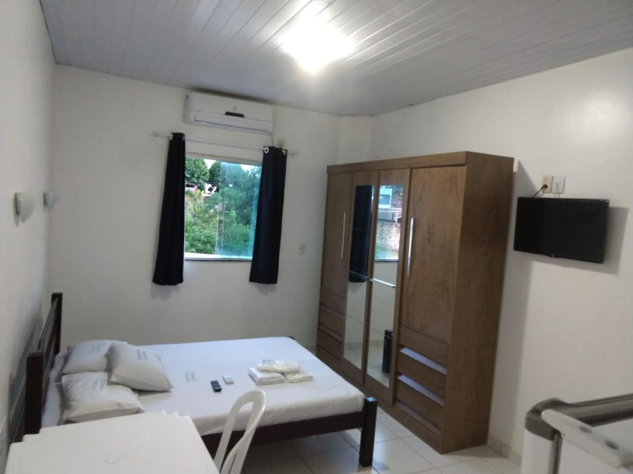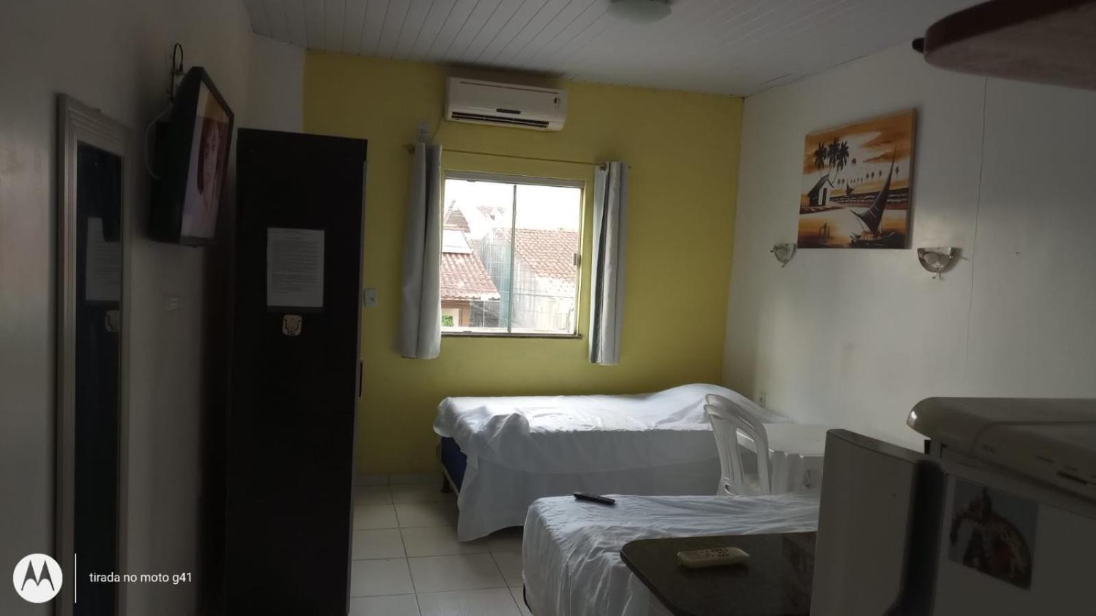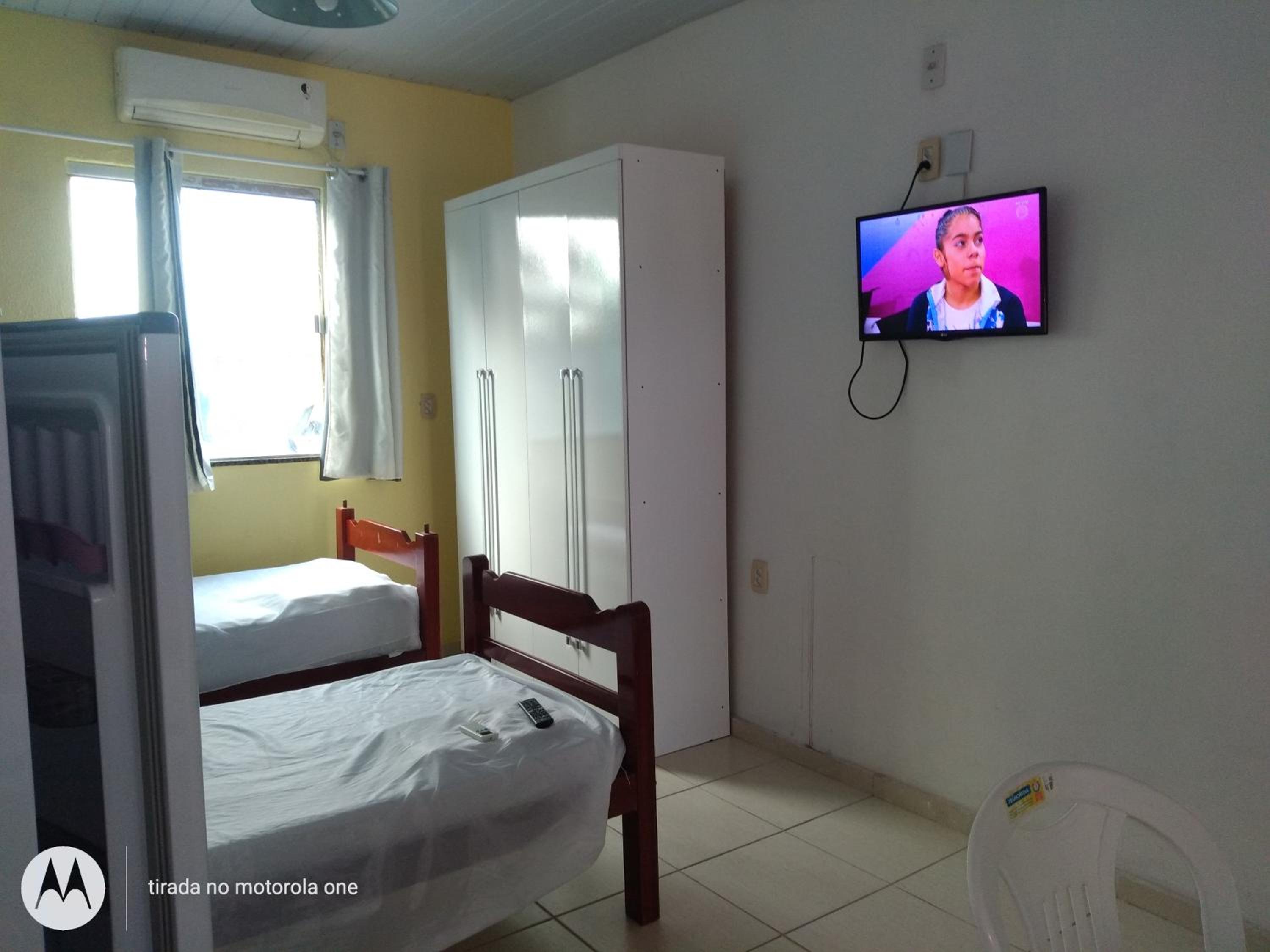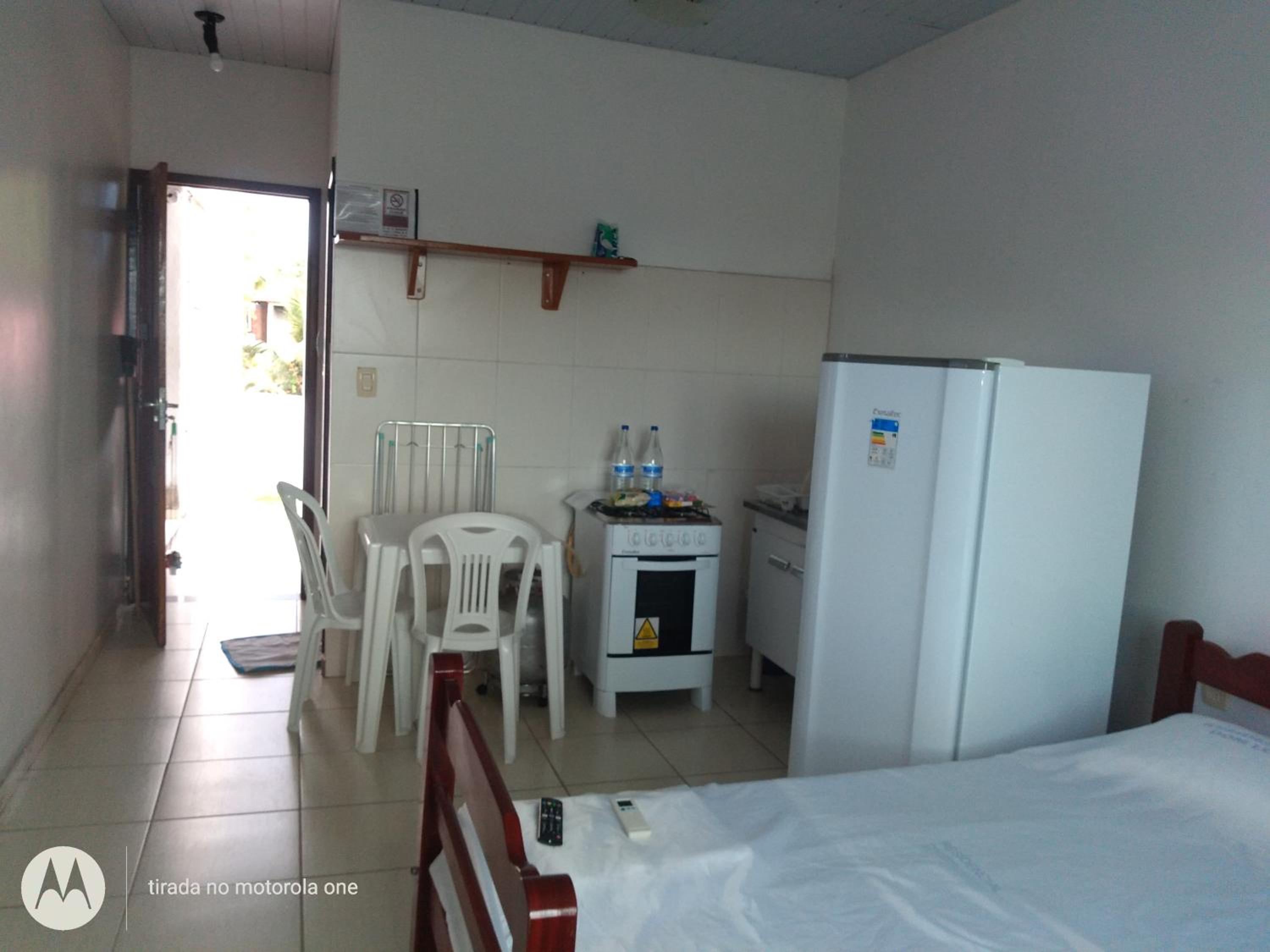 Convenient Amenities: The air-conditioned studios at Residencial Dom Fernando offer a comfortable stay with a TV, private bathroom, and a well-equipped kitchenette.