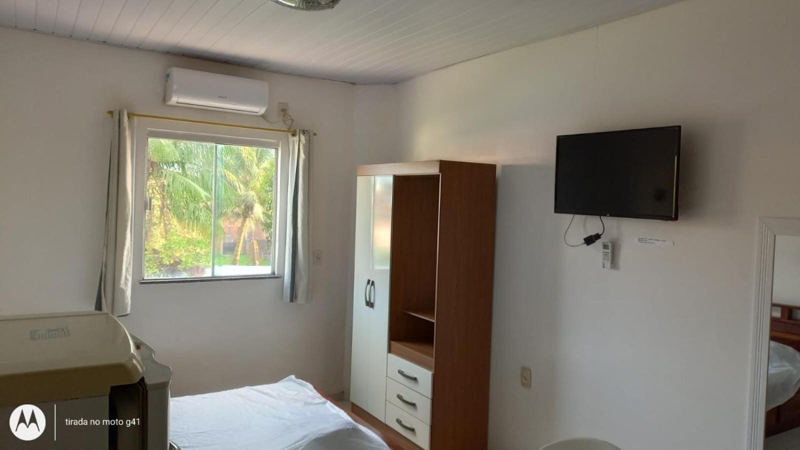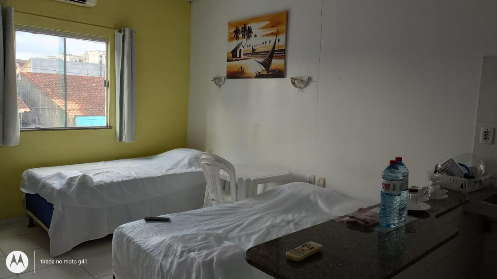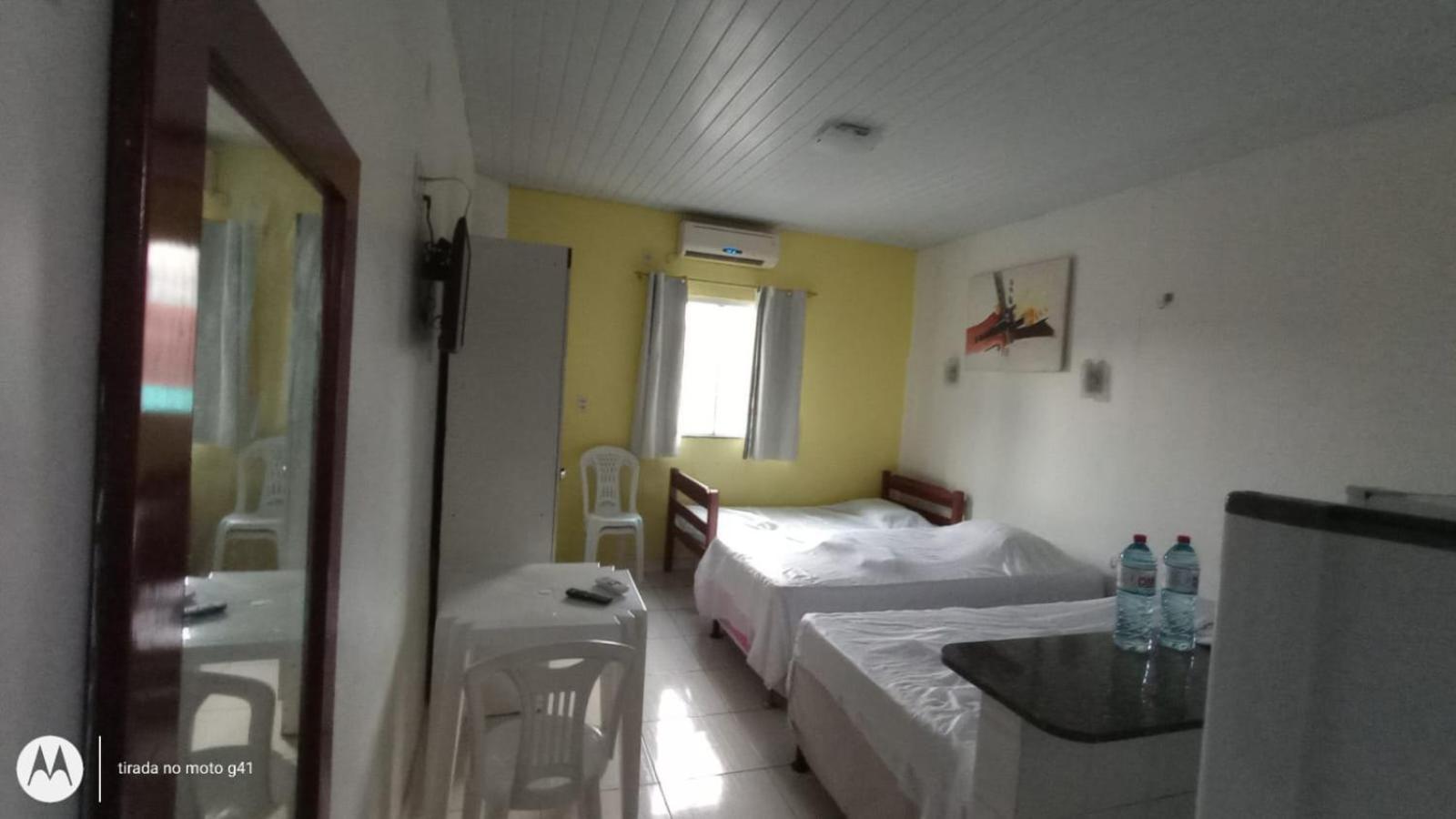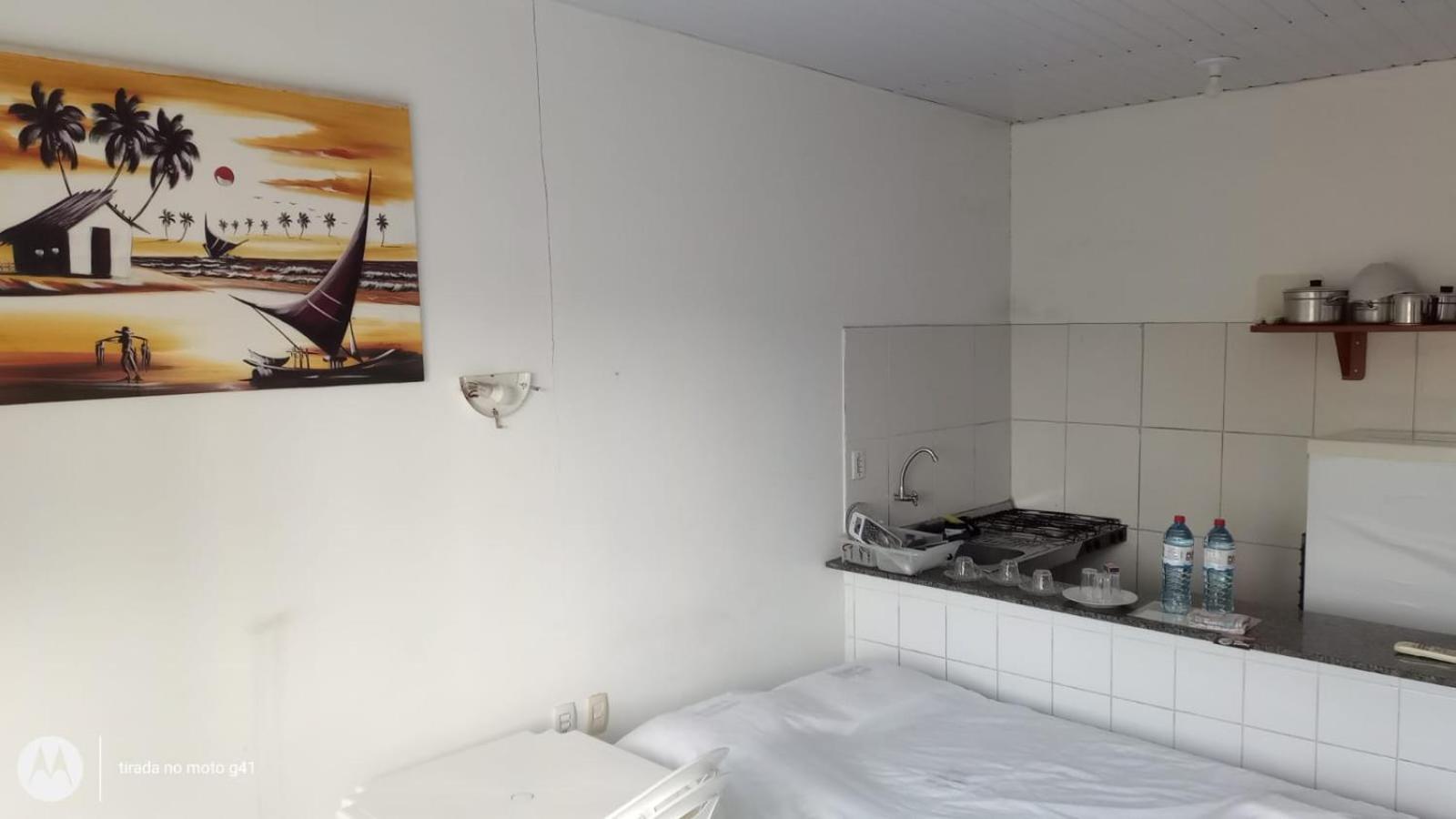 Convenient Amenities: The air-conditioned studios at Residencial Dom Fernando offer a comfortable stay with a TV, private bathroom, and a well-equipped kitchenette.