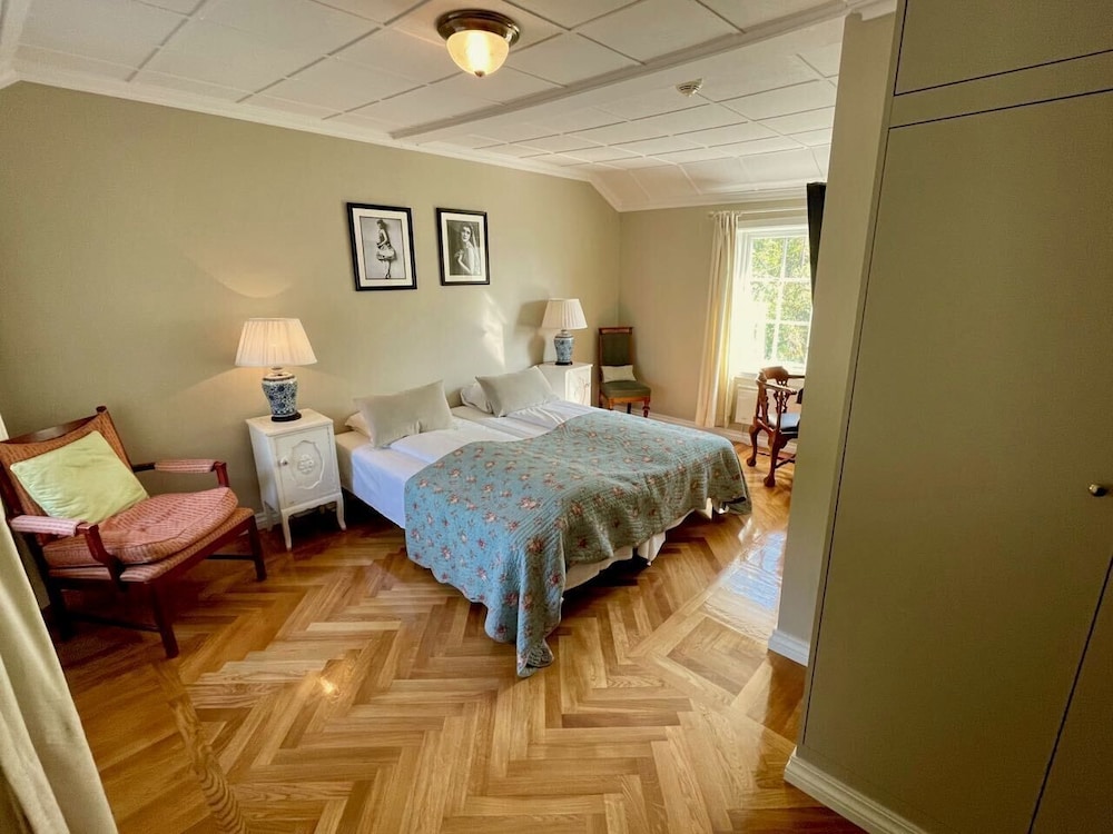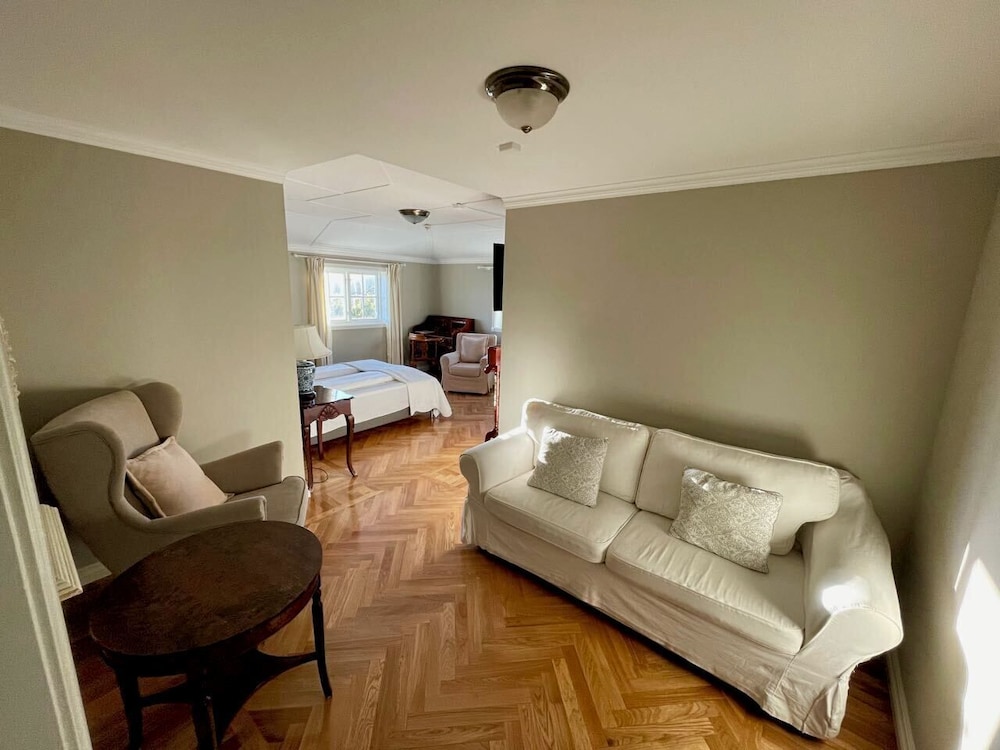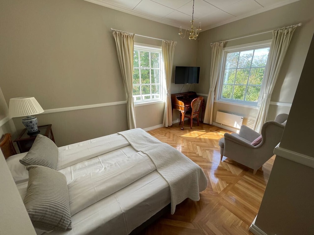 Et sted med sjel i omgivelser som tar deg tilbake i tid. Må tåle at det er lytt på rommet på grunnlag av dette. Nymalt som det var så mangler det noe å henge håndklær på og det bør være sjampo eller tilsvarende på badet. Frokosten var helt ok for å kommer i gang med dagen. Førsteinntrykket når man kjører inn porten setter en demper på det historiske fine stedet(se bilde)