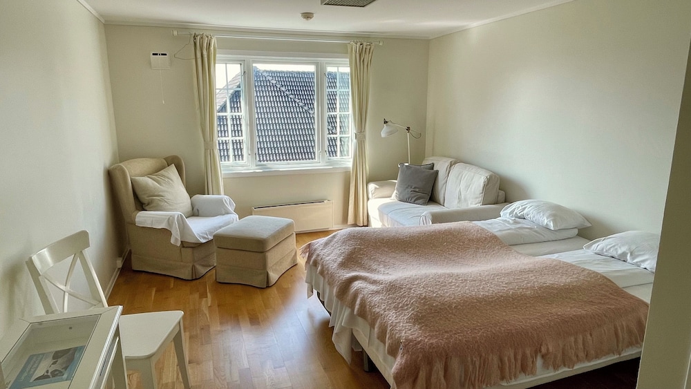 Et sånt stille sted, omgitt av sjø og flott natur og med kort vei til kollektivtilbud, restauranter, underholdning, severdigheter og flotte turstier. Det må også nevnes at vertskapet er utrolig koselige og tilstedeværende. Deler av hotellet(det gamle) har noe enklere standard på baderom, men har kvalitet i henhold til pris man betaler.