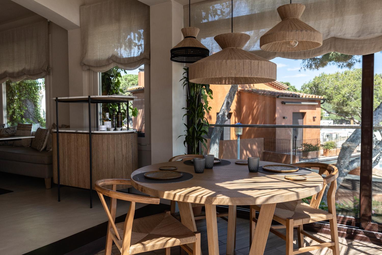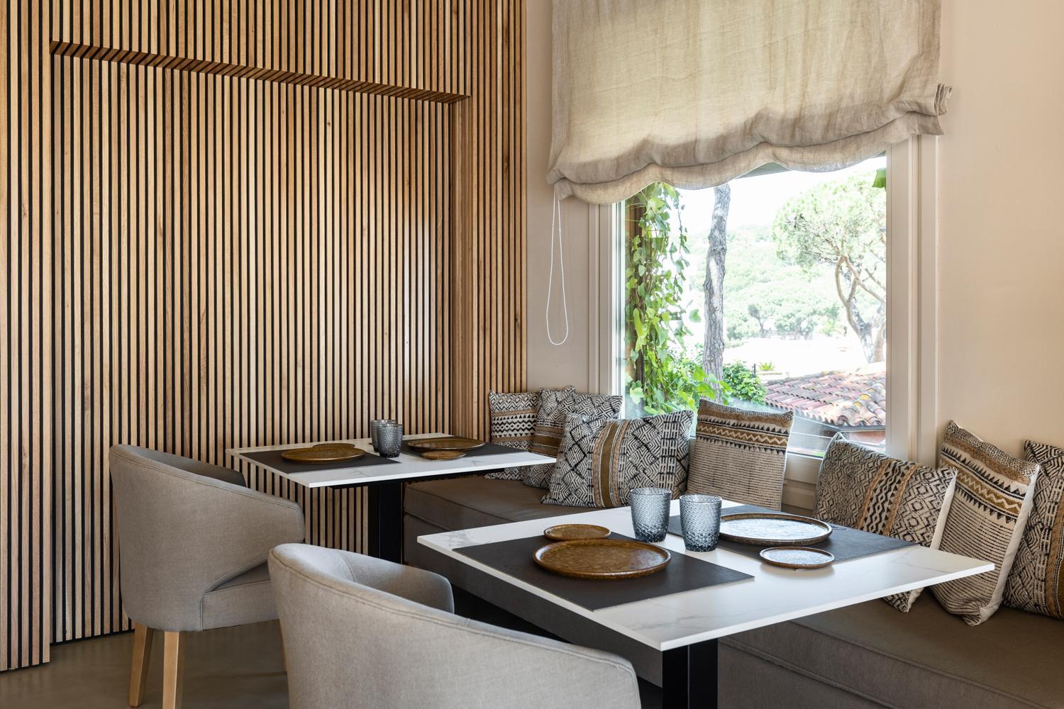 La salle de restaurant est décorée avec goût.