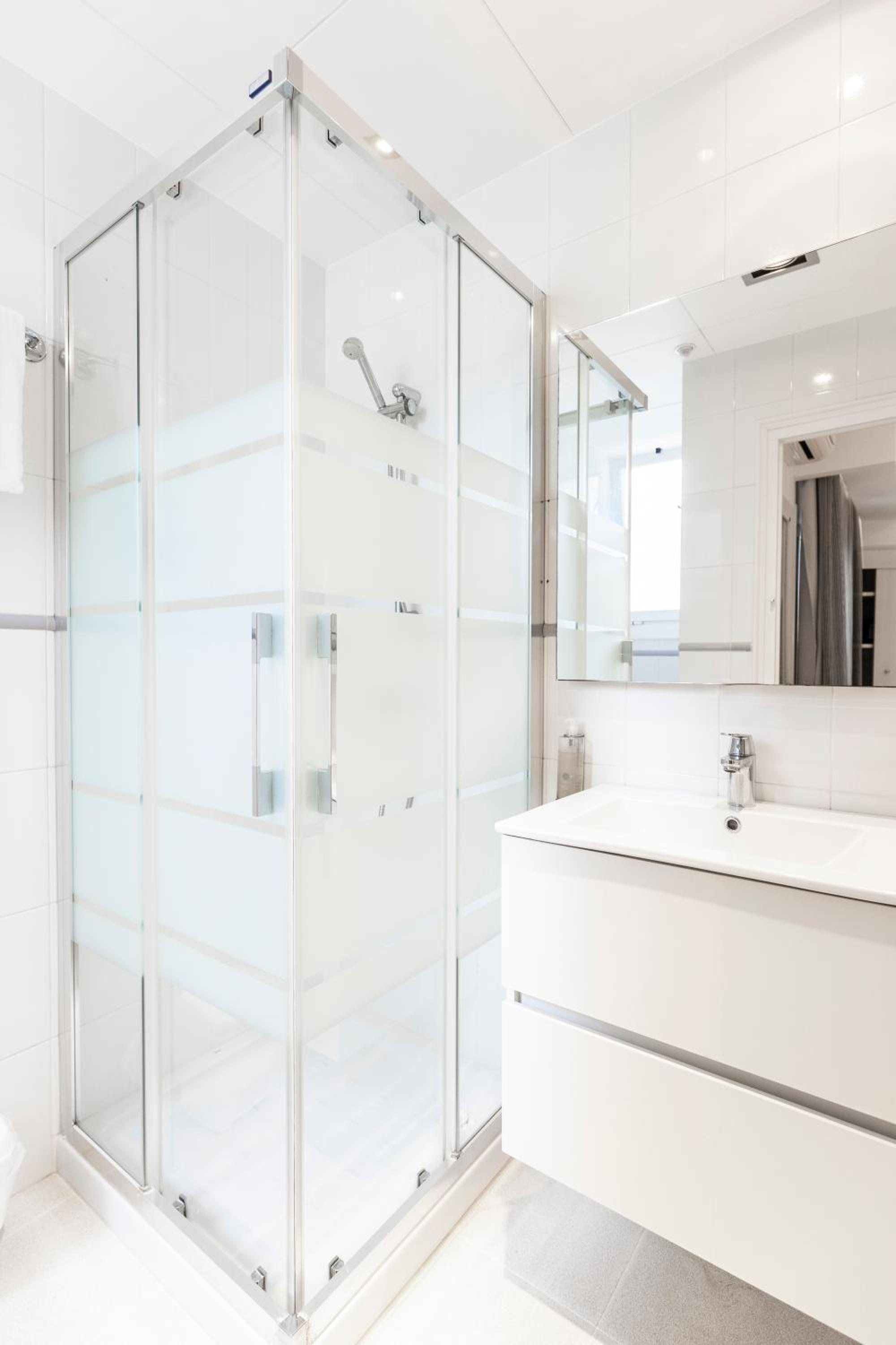 La chambre est grande et la literie est bonne. Le chauffage par le sol dans la salle d'eau est un plus.