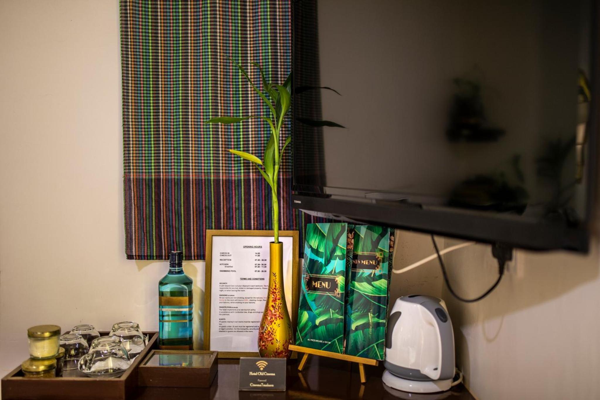 Hotel Old Cinema in Kampot offers a luxurious stay with an outdoor swimming pool, garden, terrace, and a restaurant. Enjoy the convenience of room service, tour desk, and free WiFi throughout the property. Unwind with a refreshing drink at the on-site bar.