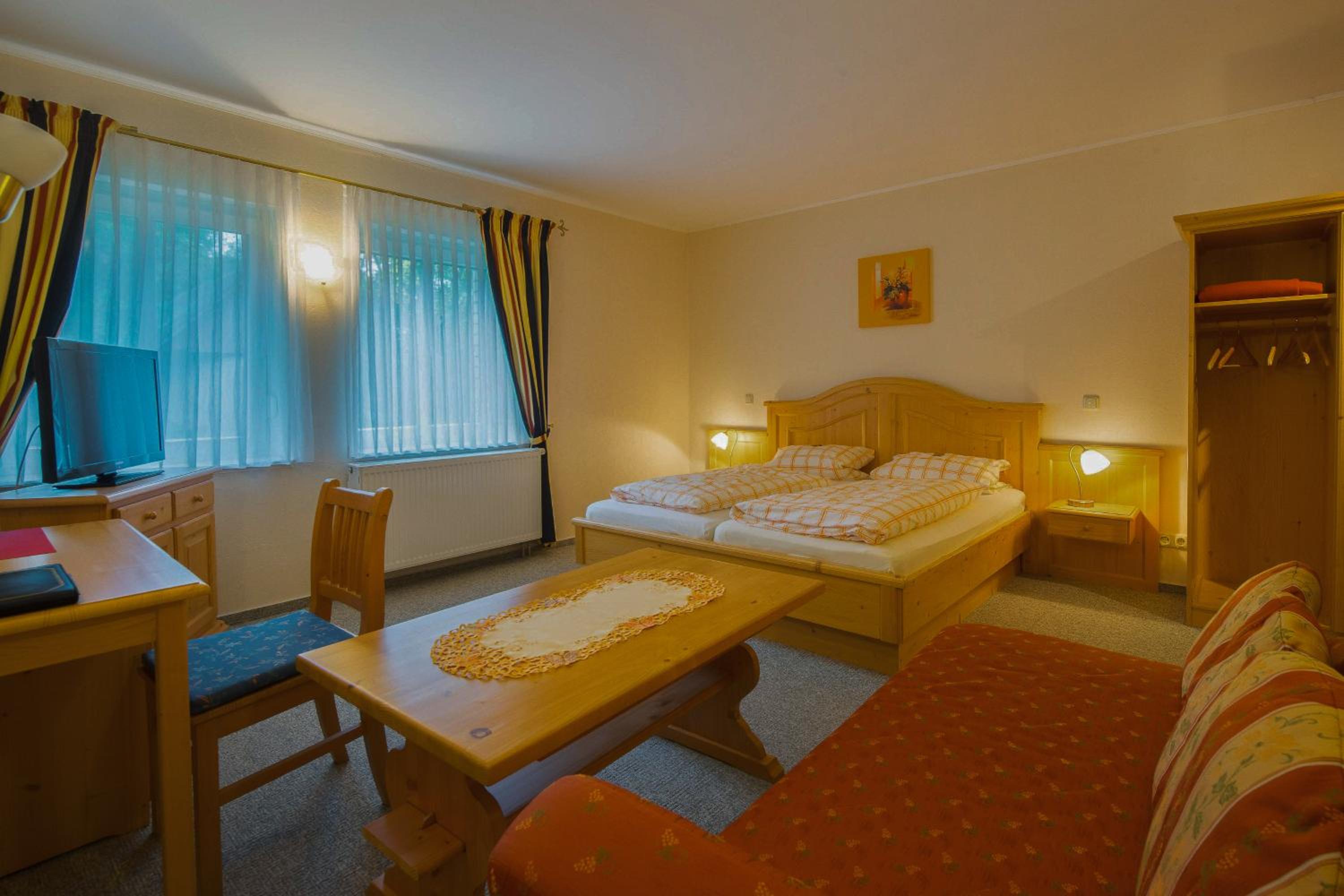 Großes gut ausgestattetes Zimmer mit schönem Bad. Gutes Frühstück mit genügend Auswahl. Kostenfreie Parkplätze. Restaurant mit gutbürgerliche Küche.