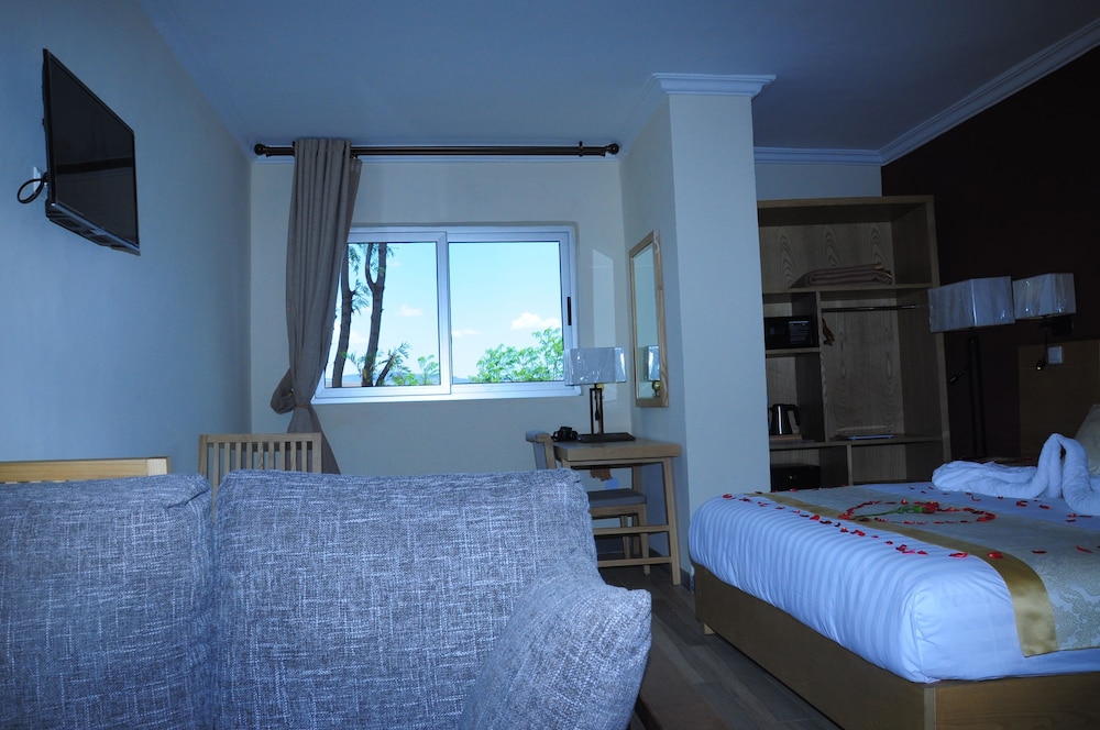 Great views from most rooms sitting on a hill - about 20 minutes walking distance of town center. Easy to hail tuk tuk. Good dinner at on site restaurant. Best wifi of any hotel we stayed at in Ethiopia outside Addis. Very nice staff. Hotel amenities still under construction - like pool and terraces. Overall (Chinese) construction quality was poor - concerned about how this property will age. Bathroom fixtures were already literally coming apart. Curtains had no finials so kept falling down when they were closed or opened. Hallway carpets starting to fray and not affixed well. Appeared to target domestic business travelers with a few international tourists.