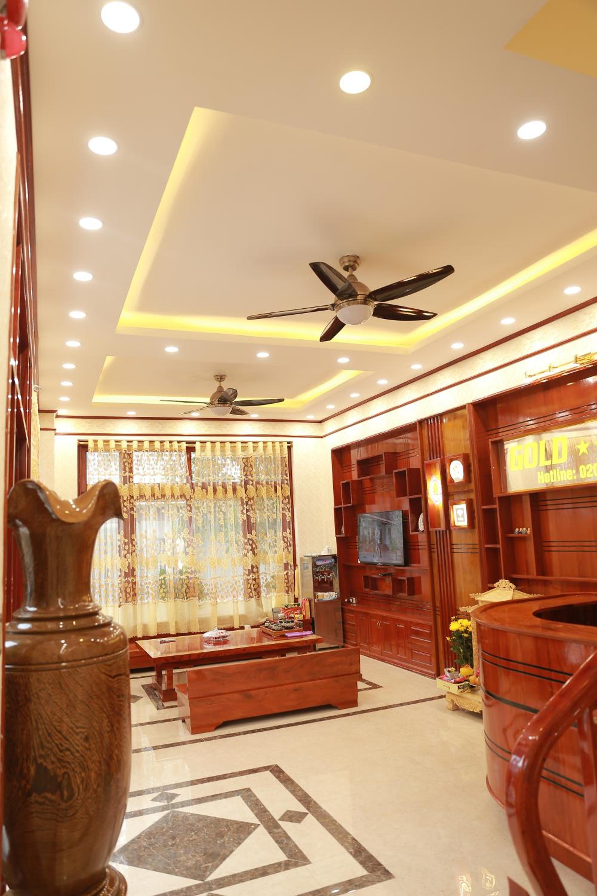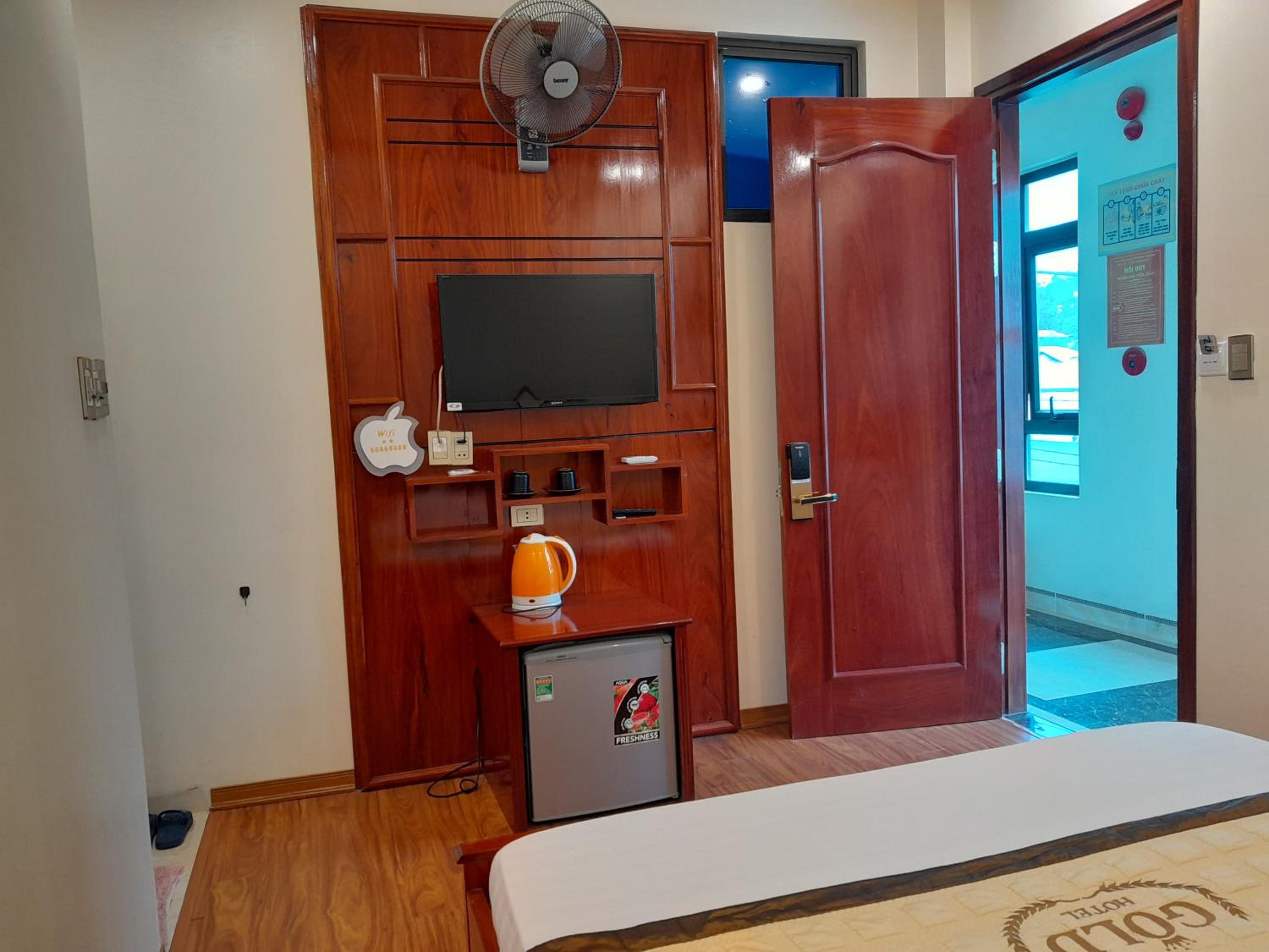 Modern Amenities: Gold Hotel in Cao Bằng offers air-conditioned rooms with free WiFi, TV with cable channels, fridge, and more. Guests can enjoy the comfort of free toiletries and cozy bed linens during their stay.