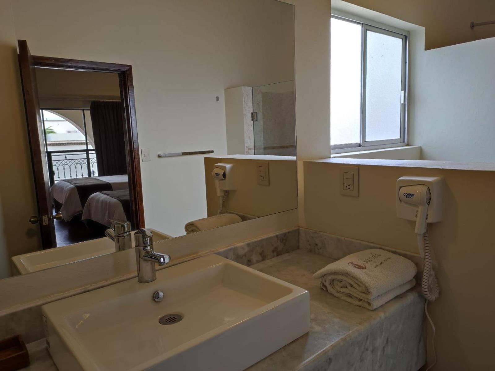 El baño le urge remodelacion, esta lleno de moho en las paredes, las toallas horribles, vuejas y rotas, el resumidero de la regadera se tapa y se hace alberca, la señora malencarada que esta en la noche en recepción tiene una manera de atender muy grostesca, me dio dinero de menos en mi cambio y al decirle como que se molestó y pone una actitud despreciante de mala gana, y ya es la segunda vez que me pasa, y el muchacho que mandan a "revisar" la habitacion es un tanto incomodo que vaya contigo hasta la habtacion se pase, revise y se quede dentro platicando para pedir propina, no hace falta que hagan eso, revisen las habitaciones antes de entregar y no hace falta mandarlo a el.