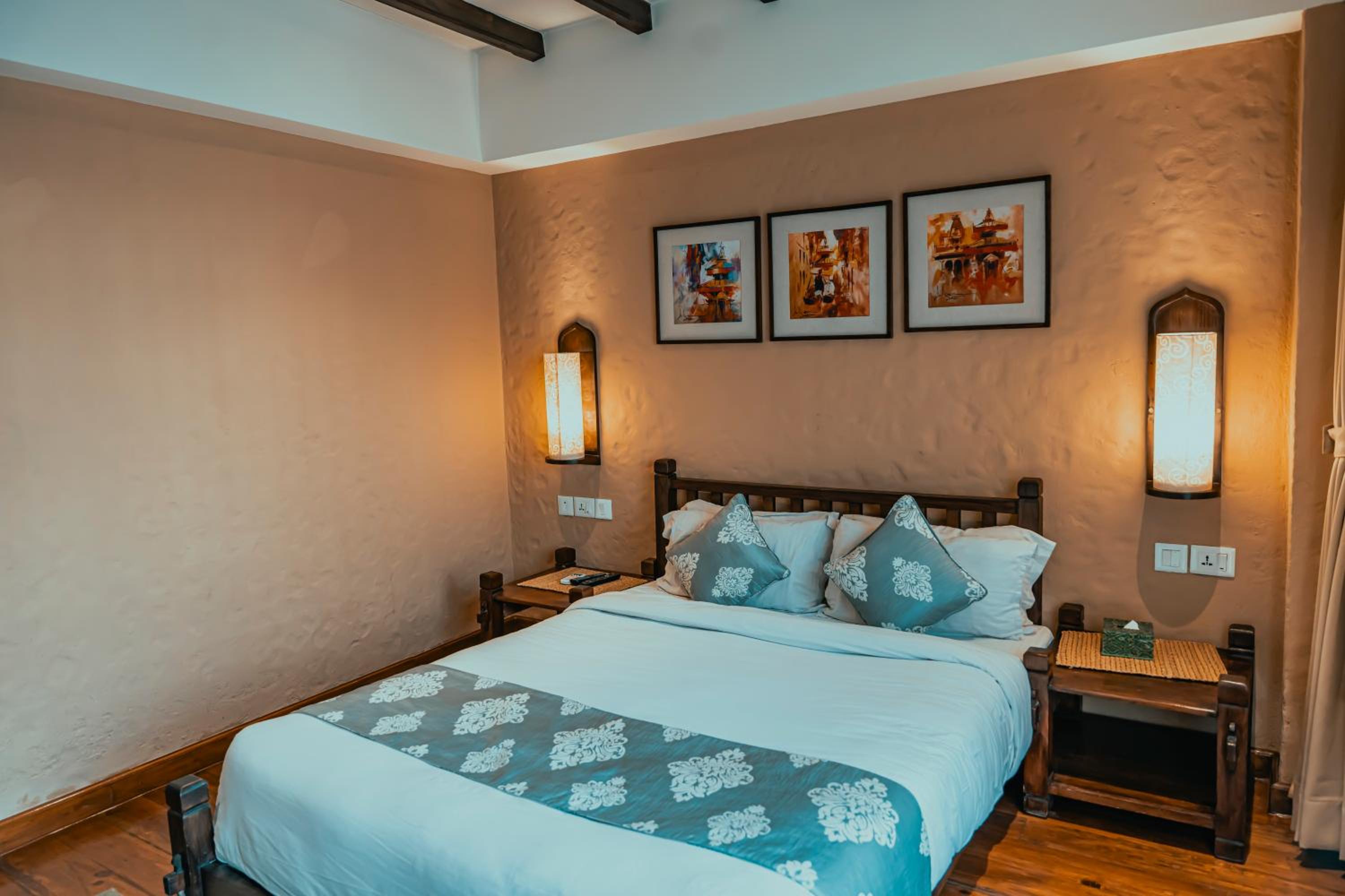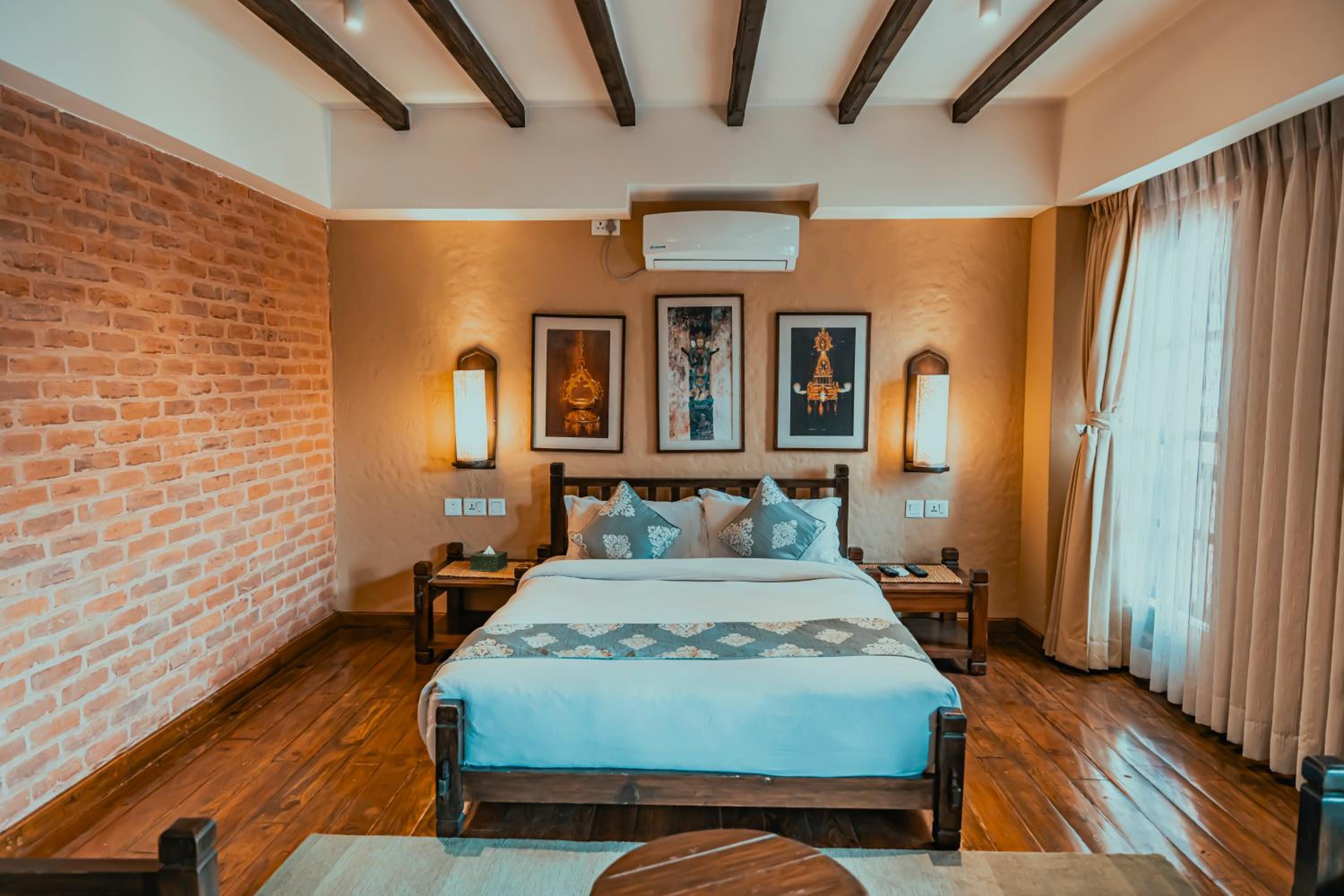 街の喧騒の真っ只中ですがホテル内は静かで受け継がれて来た伝統工芸品の数々に落ち着きがありフロントの方々どなたも物静かで質問や相談にも真摯に向き合って答えてくれ参考になり助かりました。買い物、食事にはものすごく便利な立地でした ネパールの旅が思い出深いものとなりました ありがとうございます