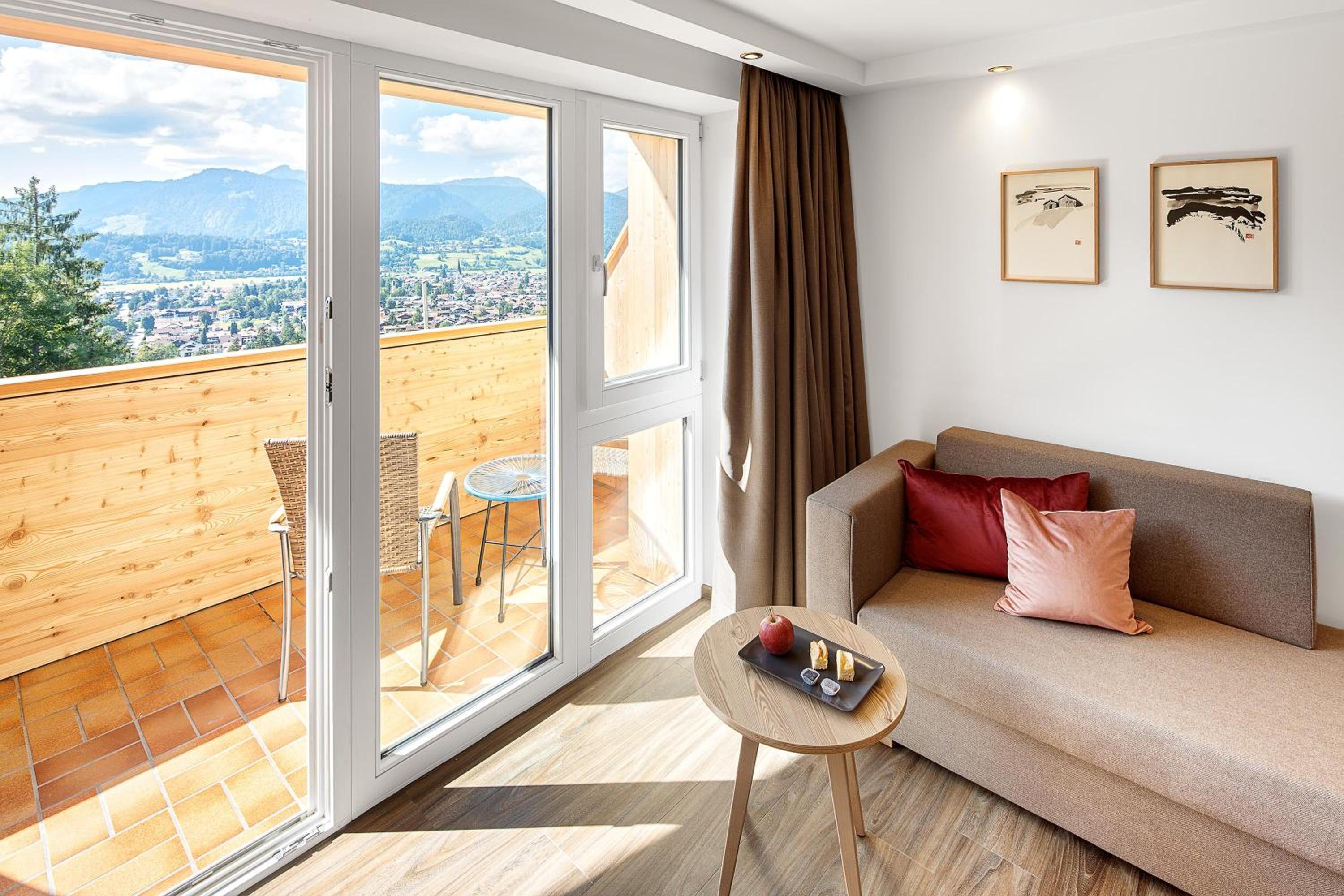Sehr schönes Hotel oberhalb von Oberstdorf. Die Lage ist traumhaft und bietet einen Blick auf die Berge und Oberstdorf. Alles ist total entspannt, das Frühstück bietet alles was man für einen Start in den Tag benötigt, das Abendessen ist sehr liebevoll zubereitet und sehr lecker. Der Ahorngarten ist ein sehr schöner Platz um seine Mahlzeiten zu sich zu nehmen. Das Personal ist sehr freundlich und alles ist sehr sauber. Die Einrichtung des Hotels inklusive Lobby & Essensraum sind sehr geschmackvoll eingerichtet, das Zimmer mit Balkon bietet einen sehr schönen Raum für einen schönen Urlaub.