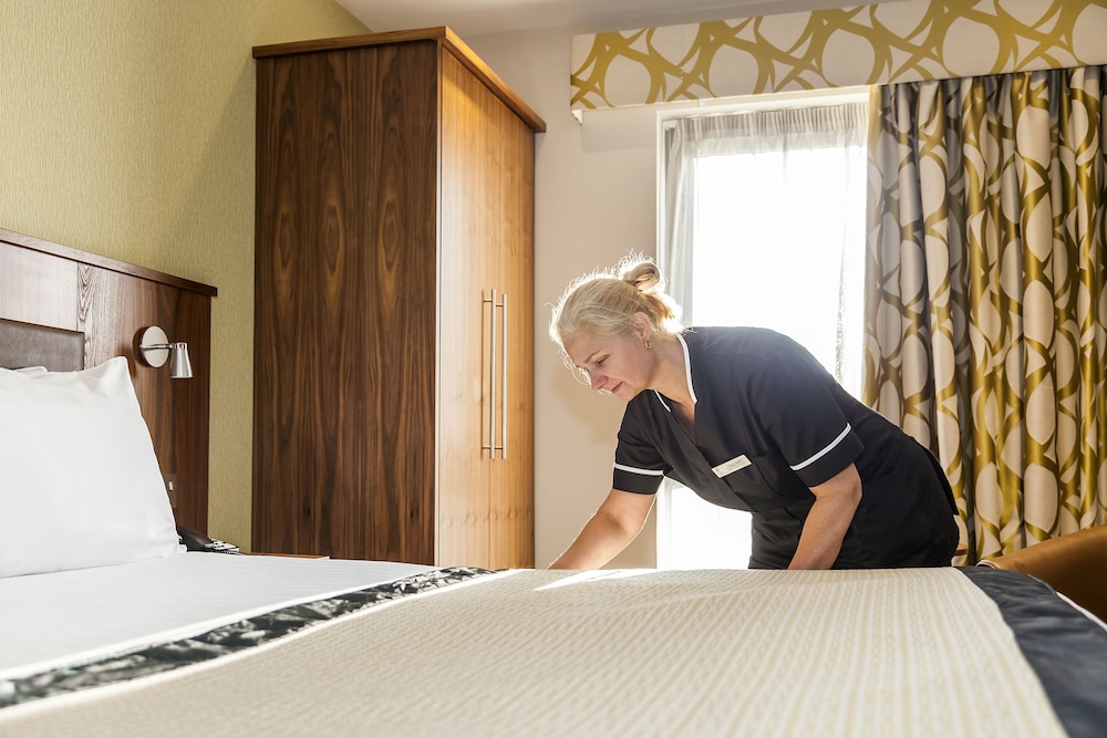 Room was clean apart apart from the toothbrush left from previous guest and the menu had fallen over knocking the glasses over. Beds /room very comfy , . Ironing board , iron , safe, hairdryer . Bar was lacking, needs cans of soft drinks and maybe some chocolate bars. Only has pints to take to room (soft drinks) and crisps