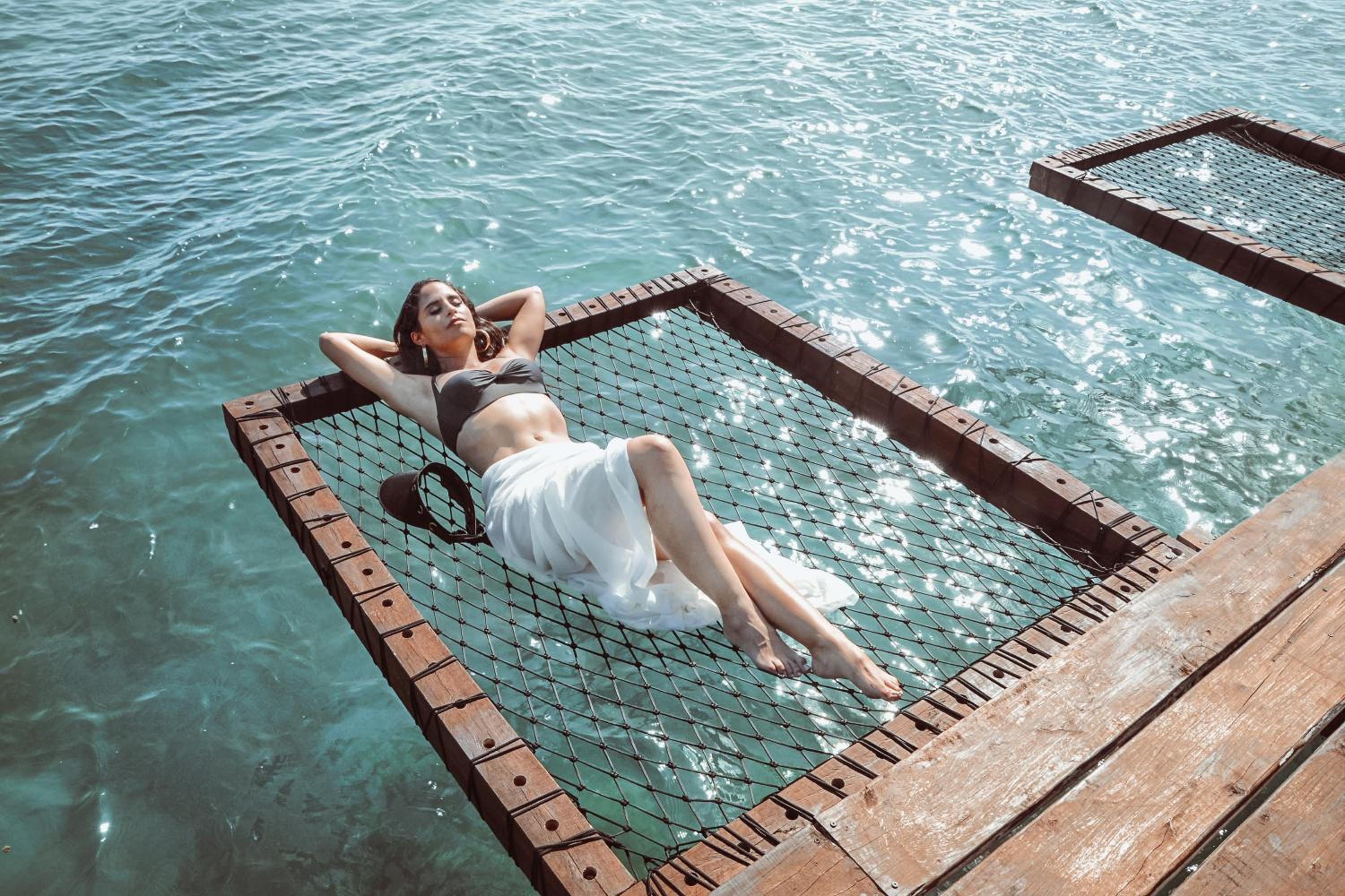 L' établissement propose un grand ponton d'où l'on peut se baigner, se détendre avec hamac, bain de soleil, balançoire dans l'eau, kawak à disposition.