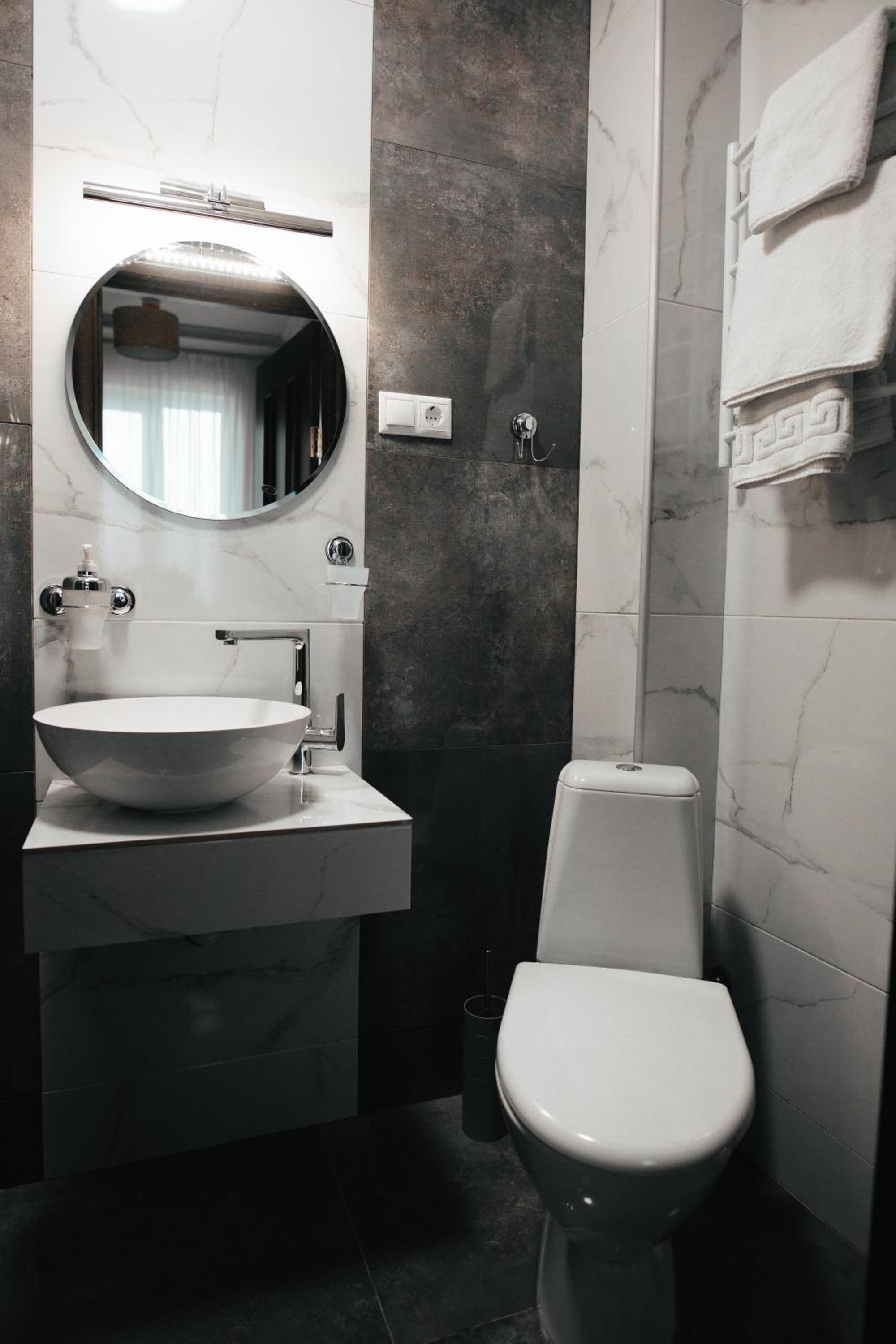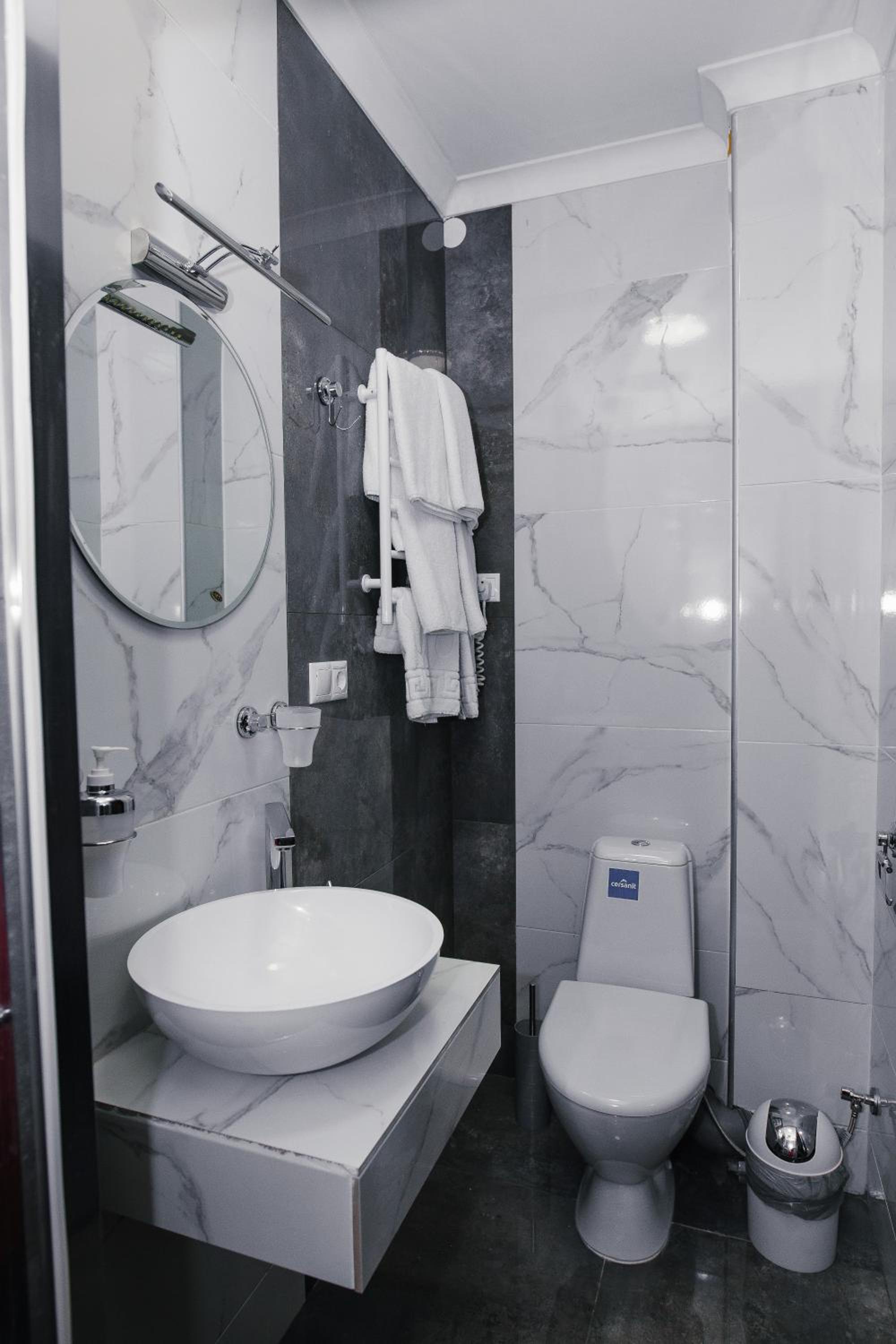 В перший день заїзду були проблеми з інтернетом( не показував ТВ), такта в адміністратора готелю немає, по Вайбер скинула що є проблеми з ТВ, то без попереджень тричі приходила( піднімала мене з ліжка, це було вже після 22-00 і я була втомлена) вона переконувалась, що дійсно не показує, на наступний день питання вирішили, дякую.Попросила праску і дошку дали, але несла до номера самостійно, жила на третьому поверсі, ліфта в готелі немає, адміністратор не запропонувала допомоги, праска була в жахливому стані, коли запитала через Вайбер за іншу праску, то написали, що немає, а потім знову без попередження занесли кращу праску.