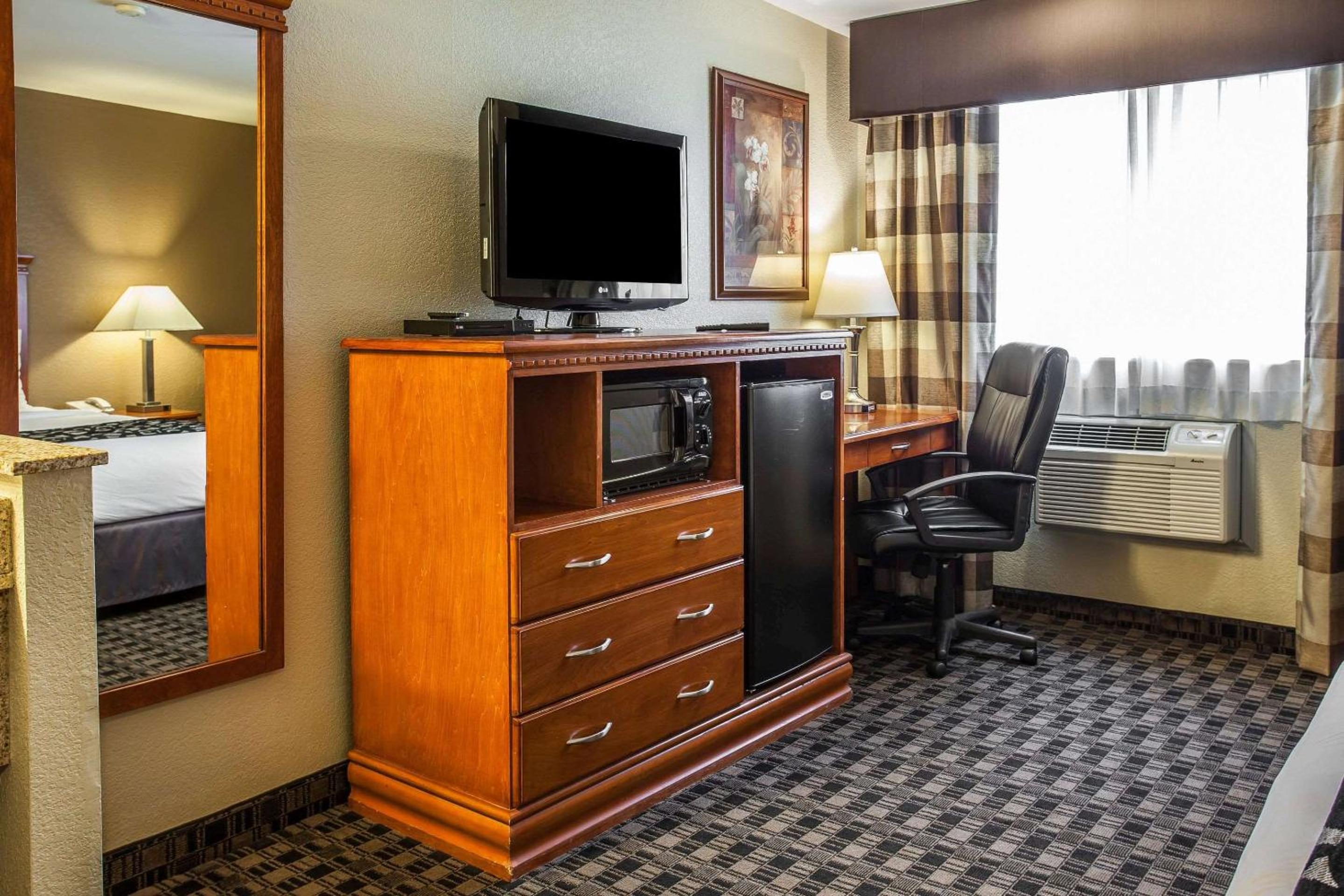 Discover a blend of comfort and convenience at Clarion Hotel Renton. Each spacious room is equipped with free Wi-Fi, flat-screen cable TV, and complimentary HBO. Enjoy additional amenities such as a DVD player, work desk, microwave, and refrigerator for a truly relaxing stay.
