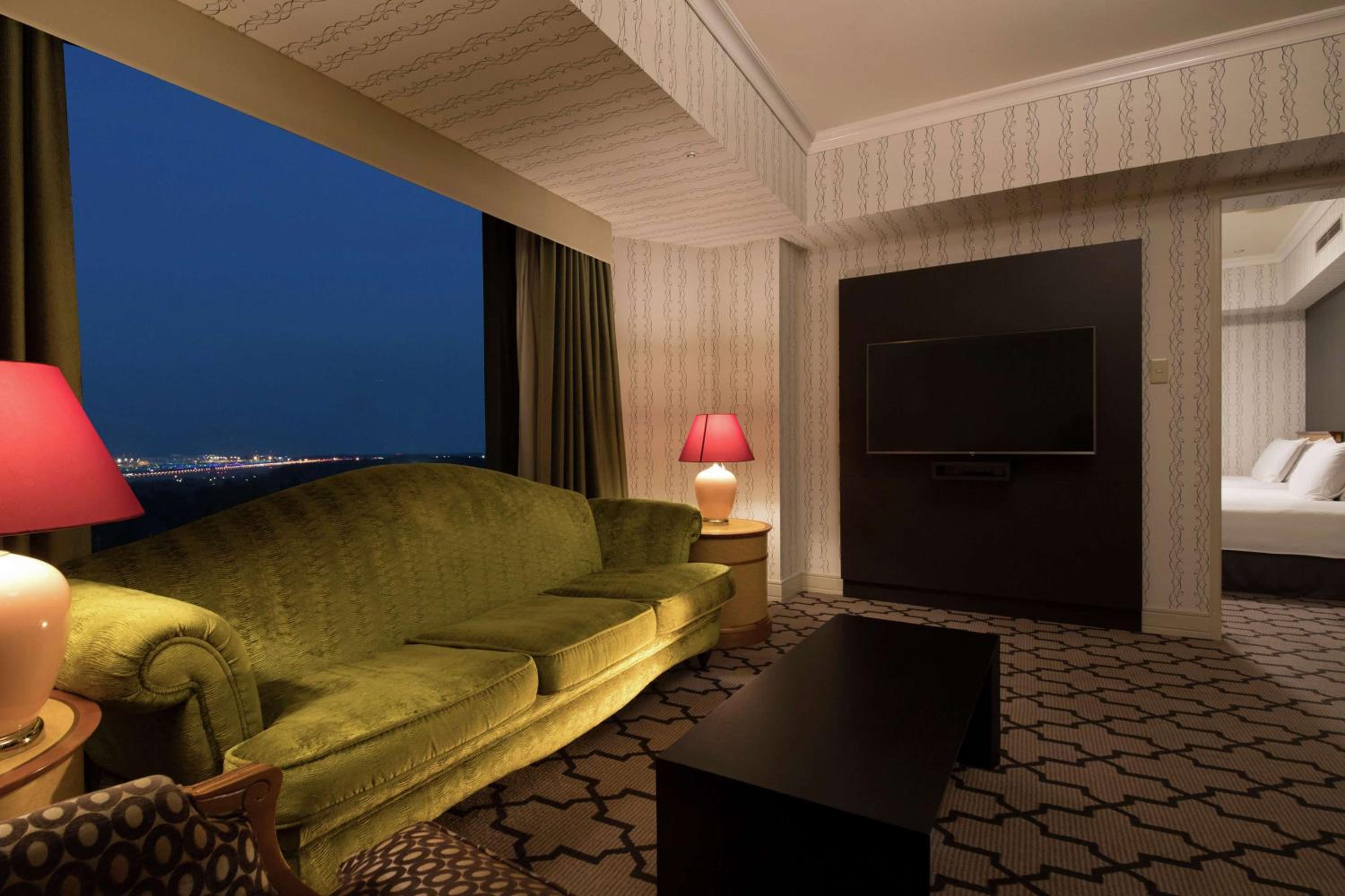 Experience the tranquility and comfort of Hilton Tokyo Narita Airport's rooms, featuring spacious bathrooms and serene forest views. Slip into a Japanese-style bathrobe and unwind with on-demand movies on the flat-screen TV. Some rooms even welcome small pets, ensuring a truly inclusive stay.