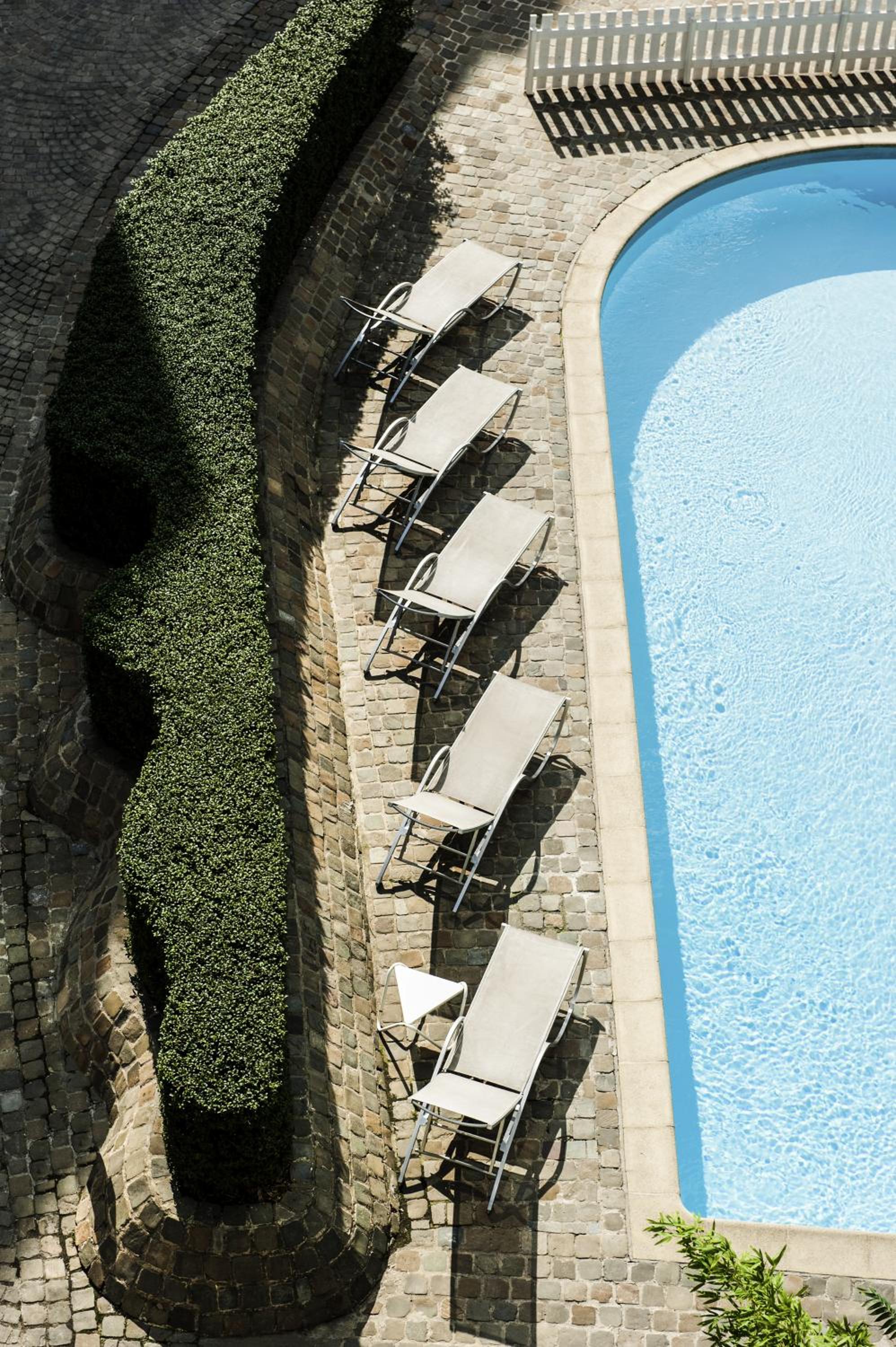 La vue sur la piscine couverte d'une bâche verte et pleine de feuilles ne colle pas vraiment à l'image chic de l'hôtel.