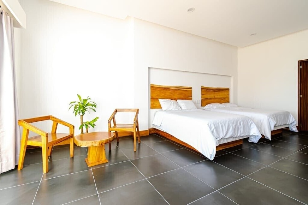For an american, this place is like a really cheap motel but on a very beautiful beach. Inside the room, the bathroom etc is very outdated. The shower head seems to be 20 years old with soap scum all over it. Chipped paint everywhere. The management and people are okay but the place is just outdated and needs a serious renovation.