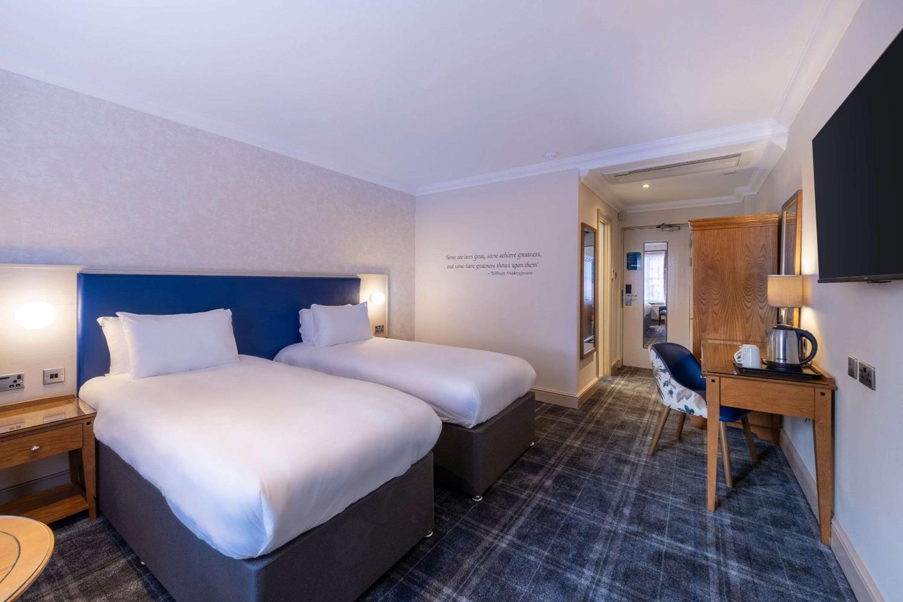 I stayed in Room 50. The bed was very comfortable, the carpet and curtains and decor all looked very clean and new. Decent bathroom. Good parking. Smooth check in. Great location for Charlcote Park and Stratford upon Avon. Bar and restaurant nicely decorated. Good value for money.