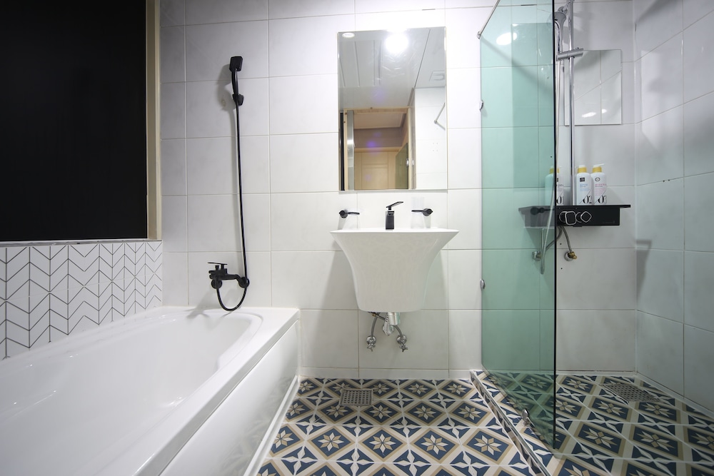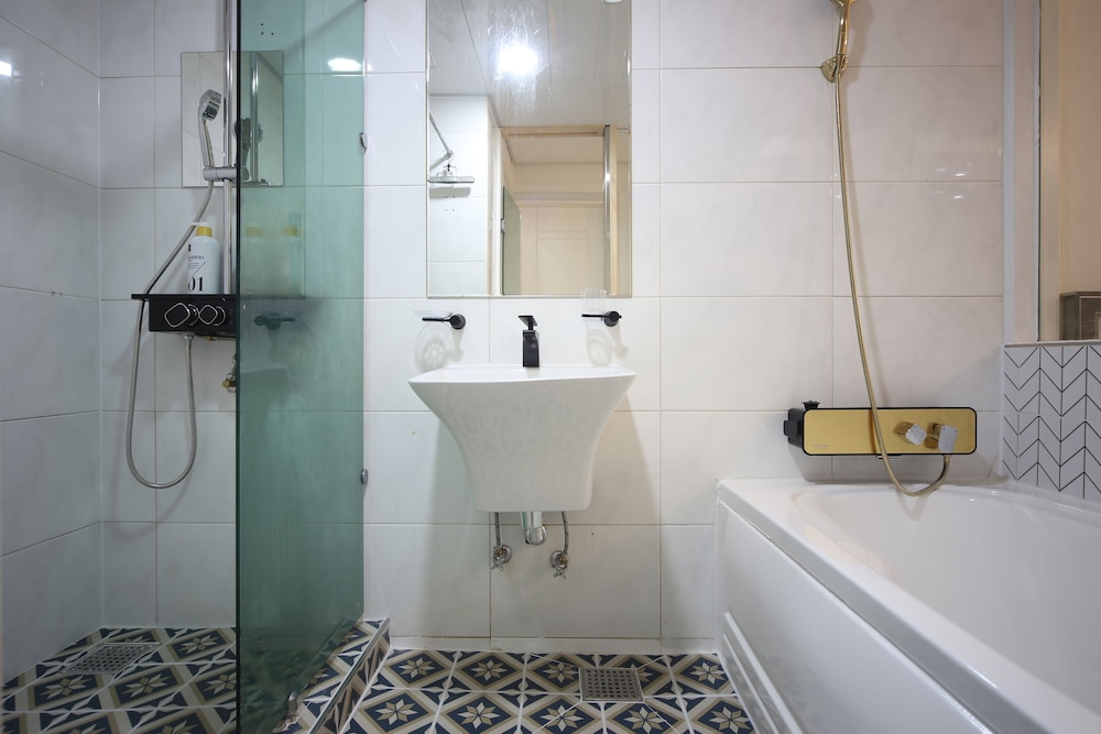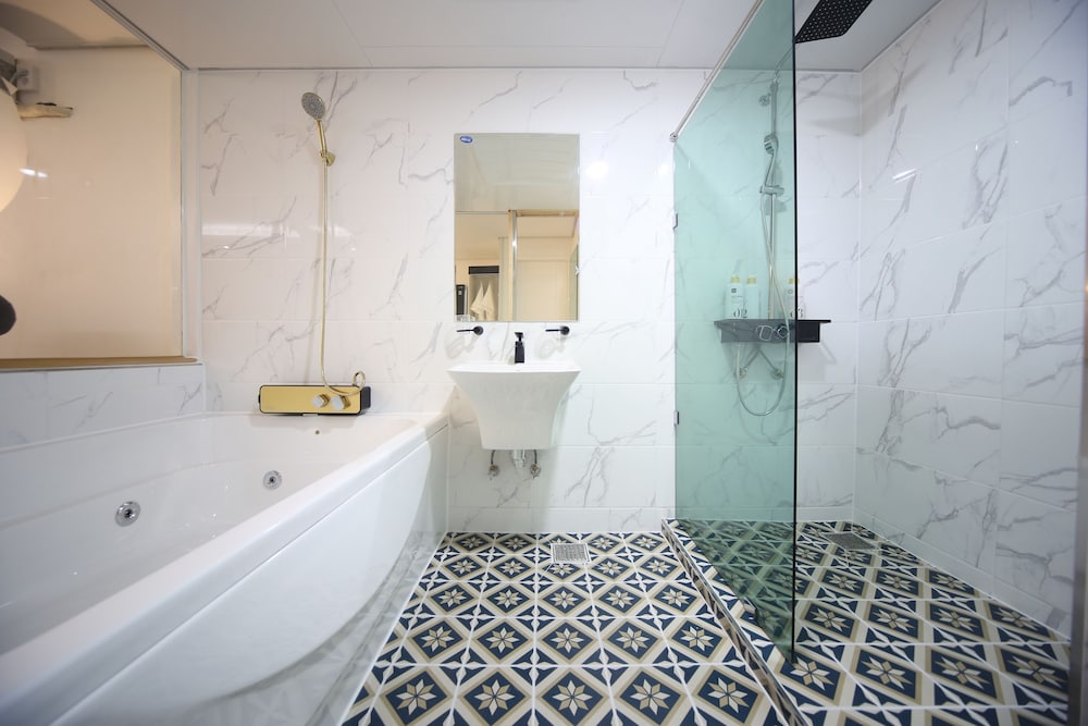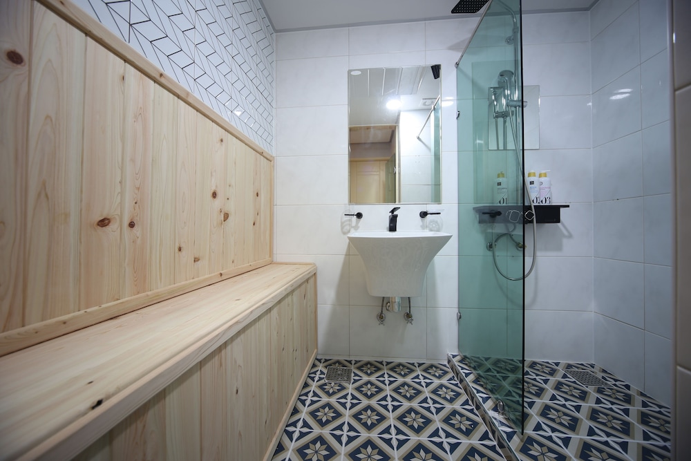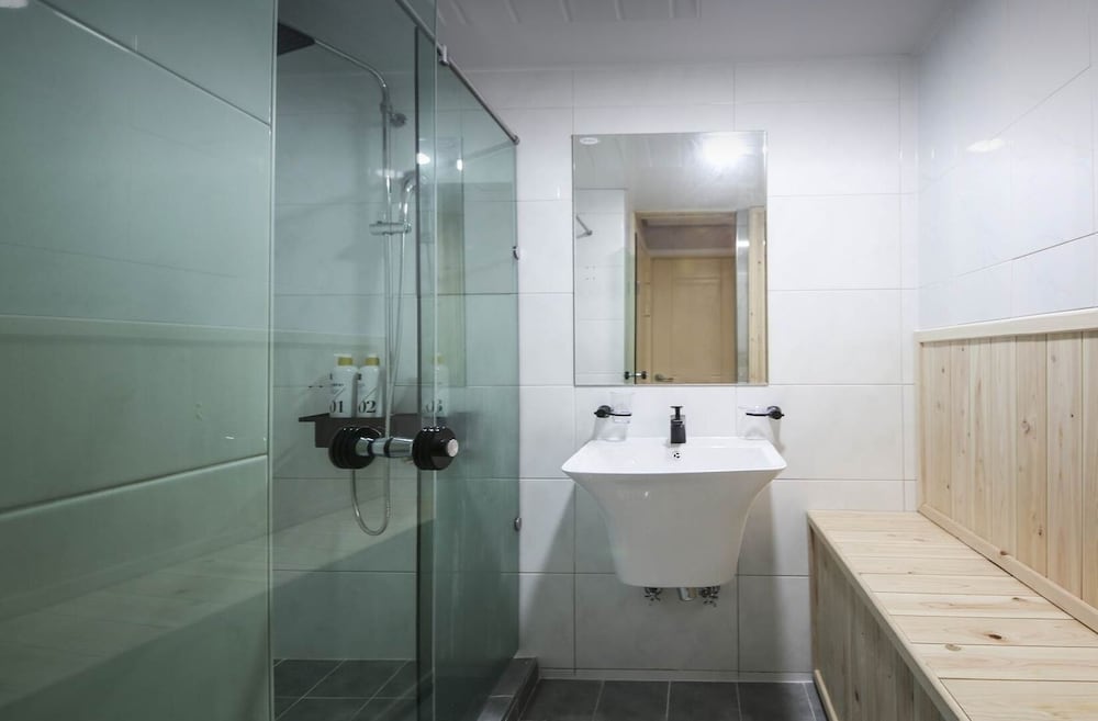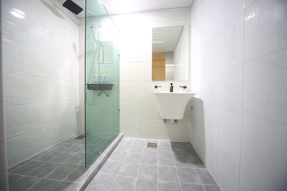 - 샤워부스가 투명유리로 되어 있음