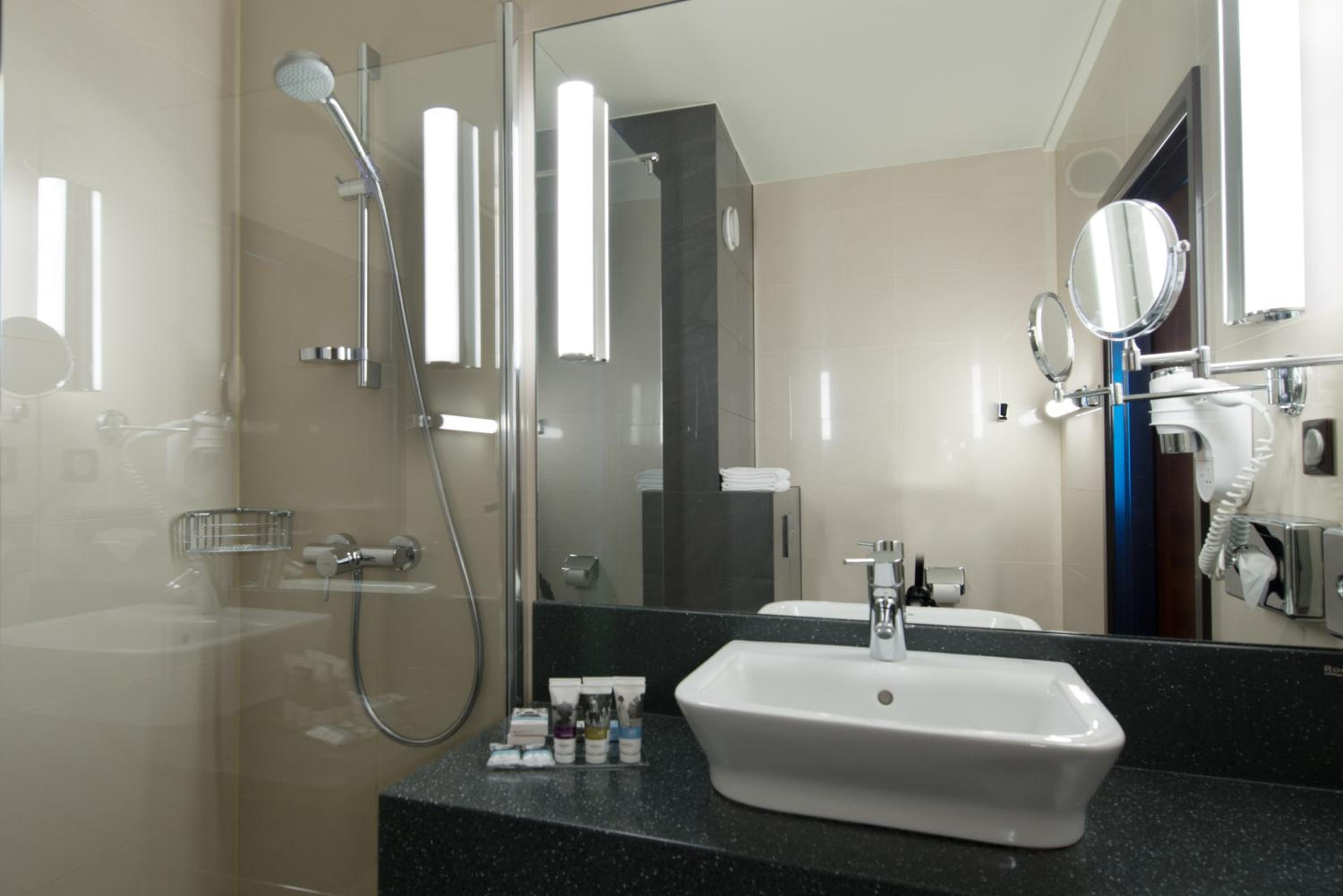 Guests have complimentary access to the indoor heated swimming pool and sauna. For an additional charge, they can indulge in the solarium. The rooms feature free WiFi, flat-screen cable TV, and a private bathroom with modern amenities.