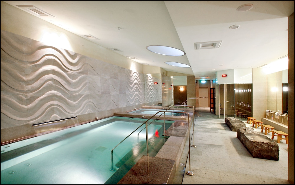 Recreational Amenities: Enjoy the luxury of an outdoor pool, a spa tub, and an outdoor tennis court during your stay at The Grand Hotel.