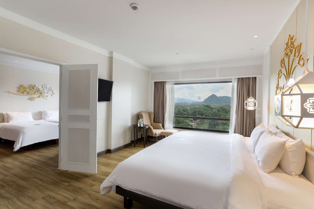 The hotel is absolutely amazing all around. The only downside is taxi is required to go everywhere, but it’s the type of hotel you really don’t have to leave. I literally could have stayed here a week straight. Restaurant was amazing for dinner, and one of the best breakfast buffets EVER. The room is huge, clean, and bed slept well. The pool/waterpark is so cool, with bar, and great place to lounge has view of River. The views are actually on a whole different level. The lighted garden, view of temple on hill, and Mountain View are truly special. The wine bar on roof at sunset is a site to see. The staff was great too. The lobby nice too.