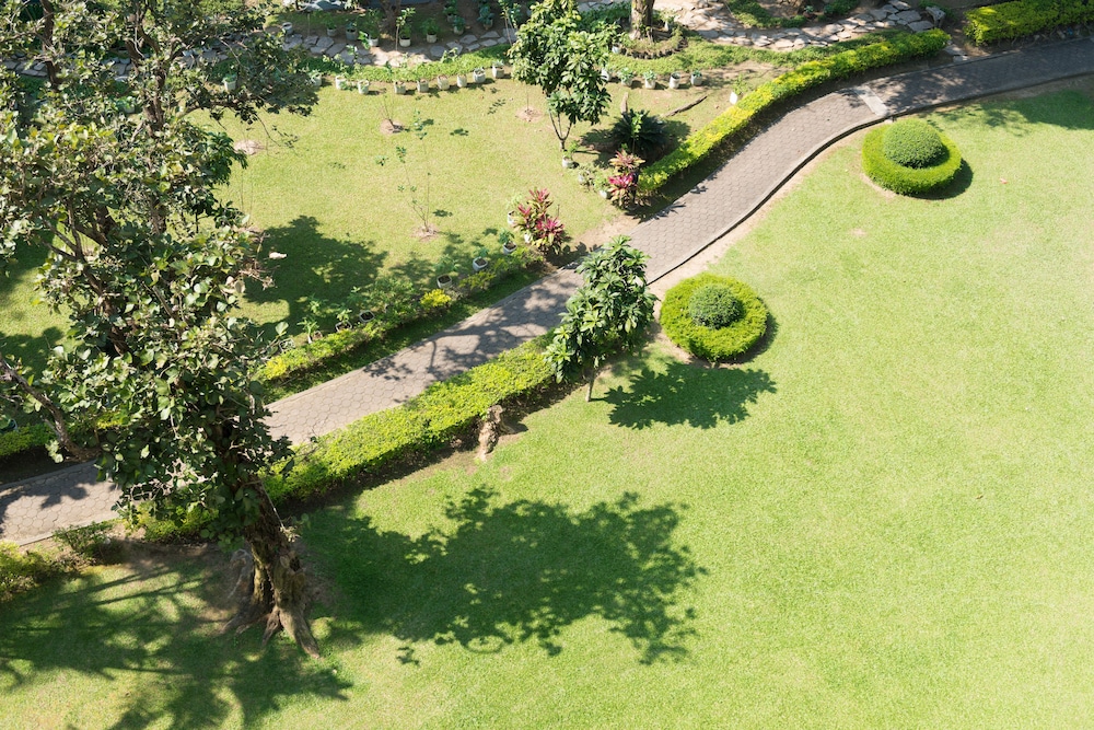 🌳 รอบโรงแรมยังล้อมไปด้วยต้นจามจุรี ต้นไม้เขียว พื้นหญ้าสวย เงียบสงบ ลู่ทางเดินให้เดินเล่นหรือวิ่งออกกำลังกายวิวปังๆ