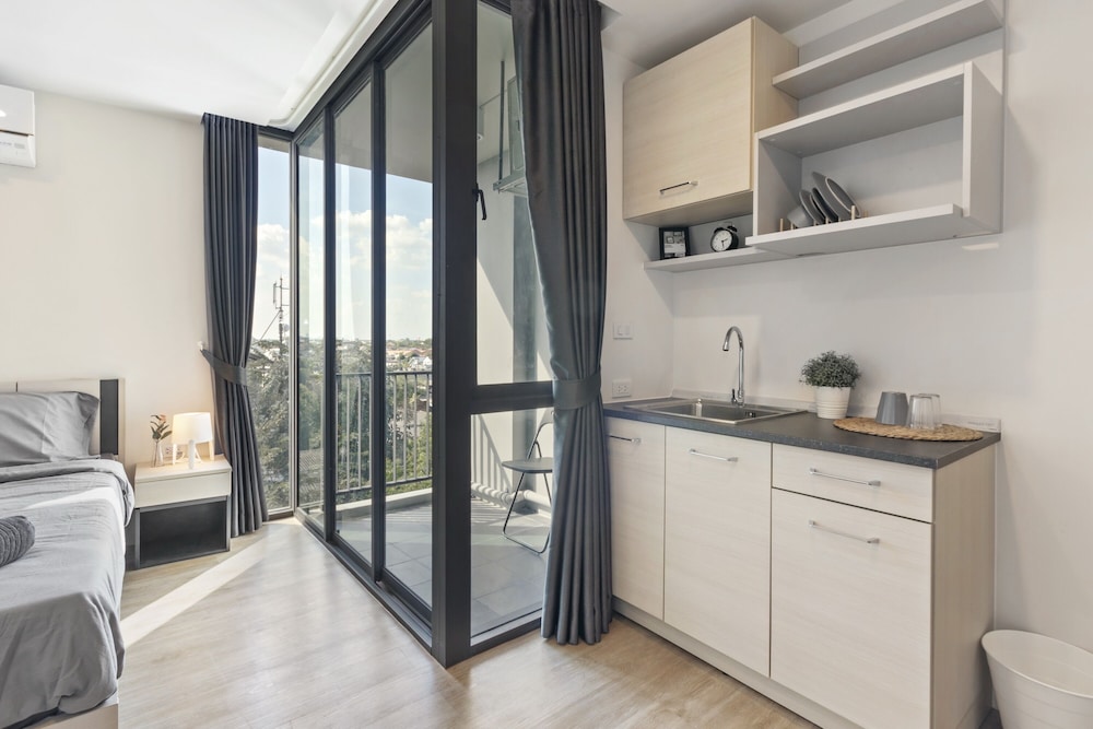 Spacious with everything you need. Close to airport with 15min taxi ride to DMK airport. There is a free self parking lot.