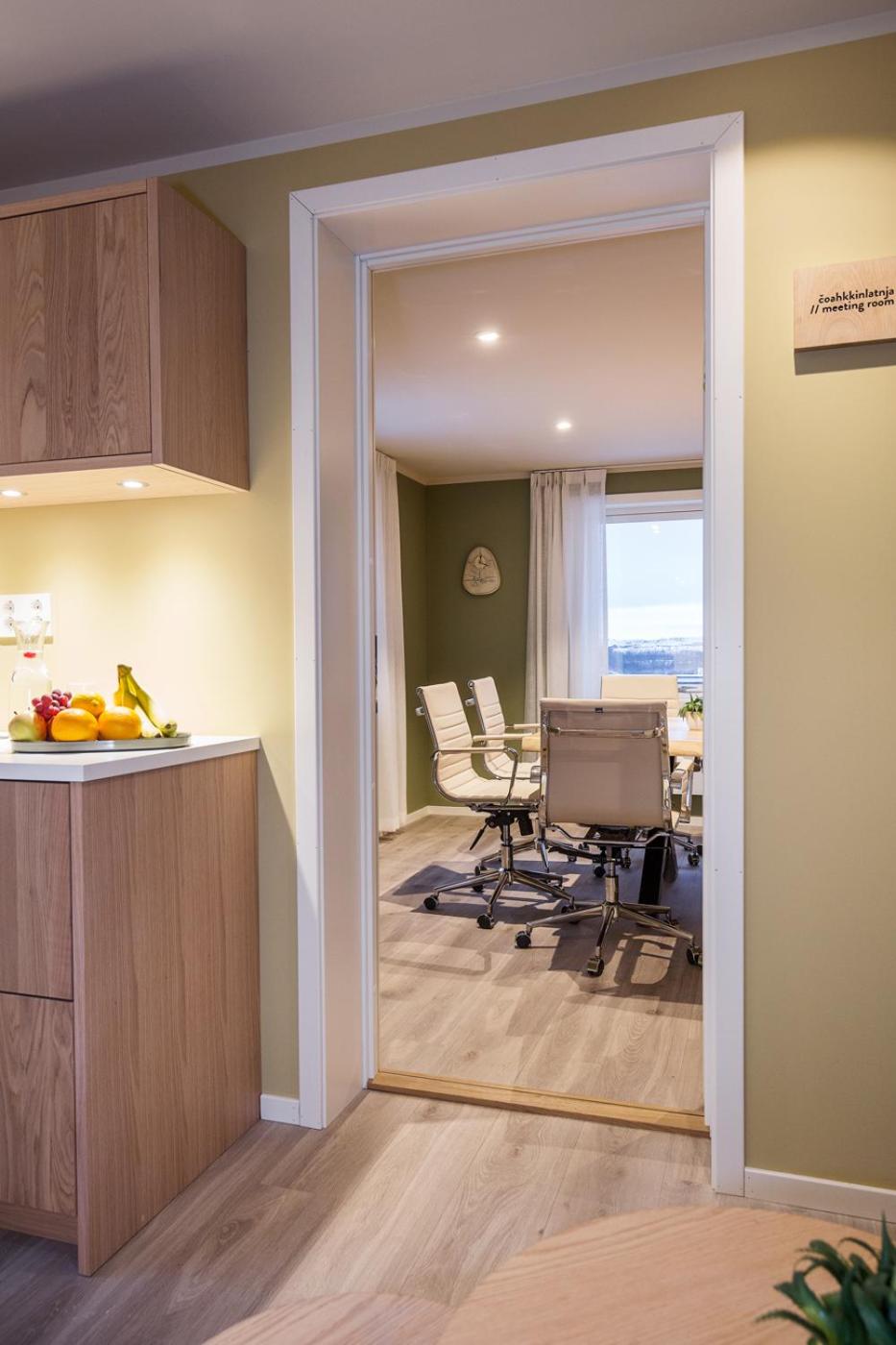 Had a easy self checkin with codes to our hotel room! BF is actually included with stay and prepared by friendly caretaker. Her self made wild mulberry jam was delicious! We also spotted the Aurora by the Sami museum across the street!