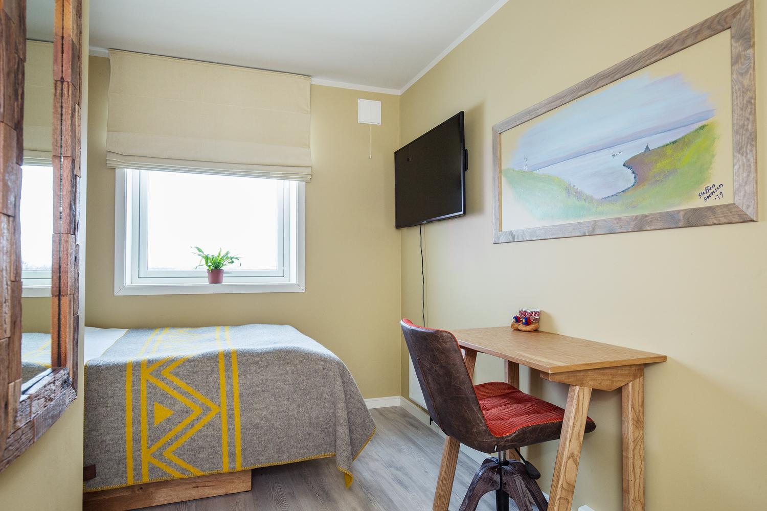 Fint rom med veldig god seng. Lite bad som gjør jobben. Du kan velge om du vil ha frokost. Anbefaler frokosten om du spiser på morgenen. Veldig god service - anbefaler å ta en natt eller flere hvis du skal være i Tana/Nesseby området.