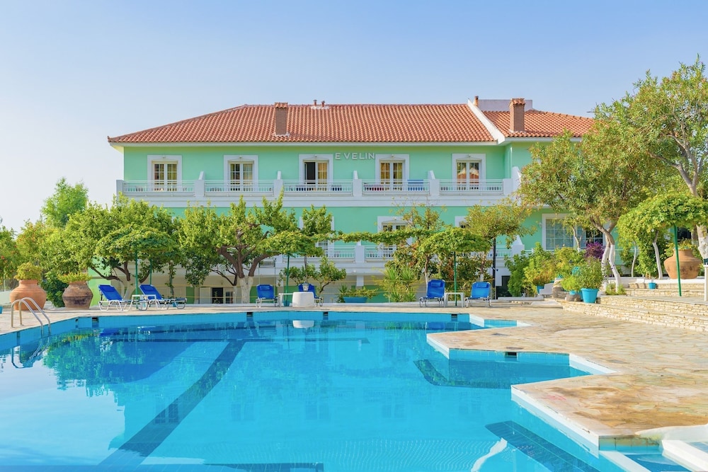 Enjoy a seasonal outdoor pool, terrace, and garden at Evelin hotel for a refreshing stay.