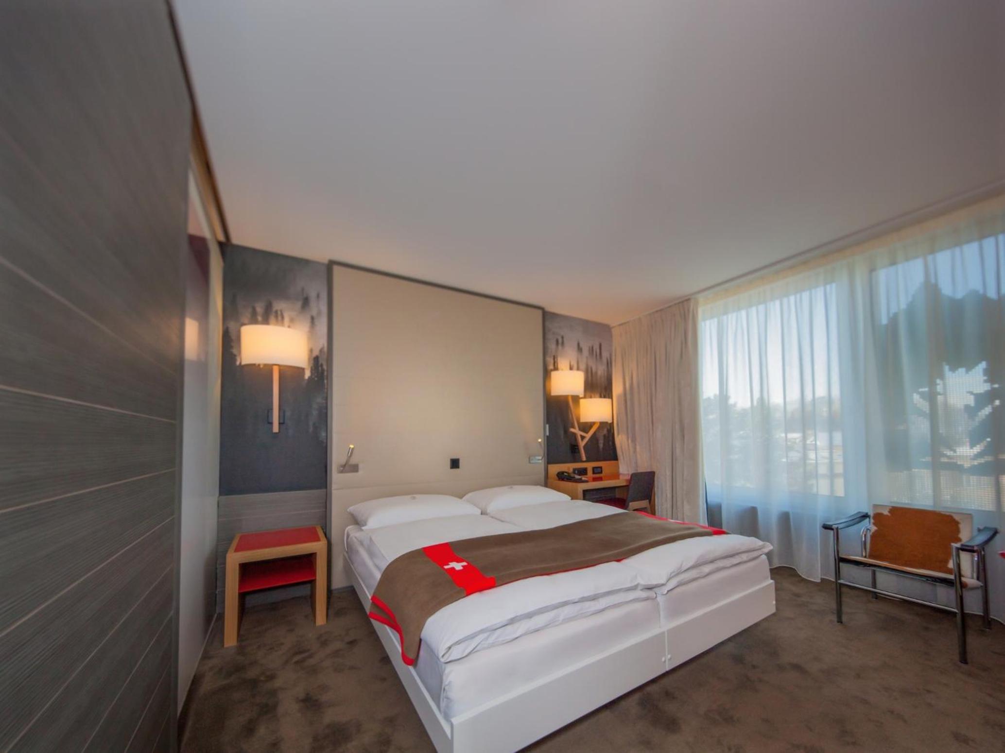 Experience comfort and luxury in every room at the Agora Swiss Night. Wake up to picturesque views of the garden from large windows, and indulge in amenities such as coffee and tea-making facilities, a flat-screen TV with international channels, and a stocked minibar with Swiss chocolates.