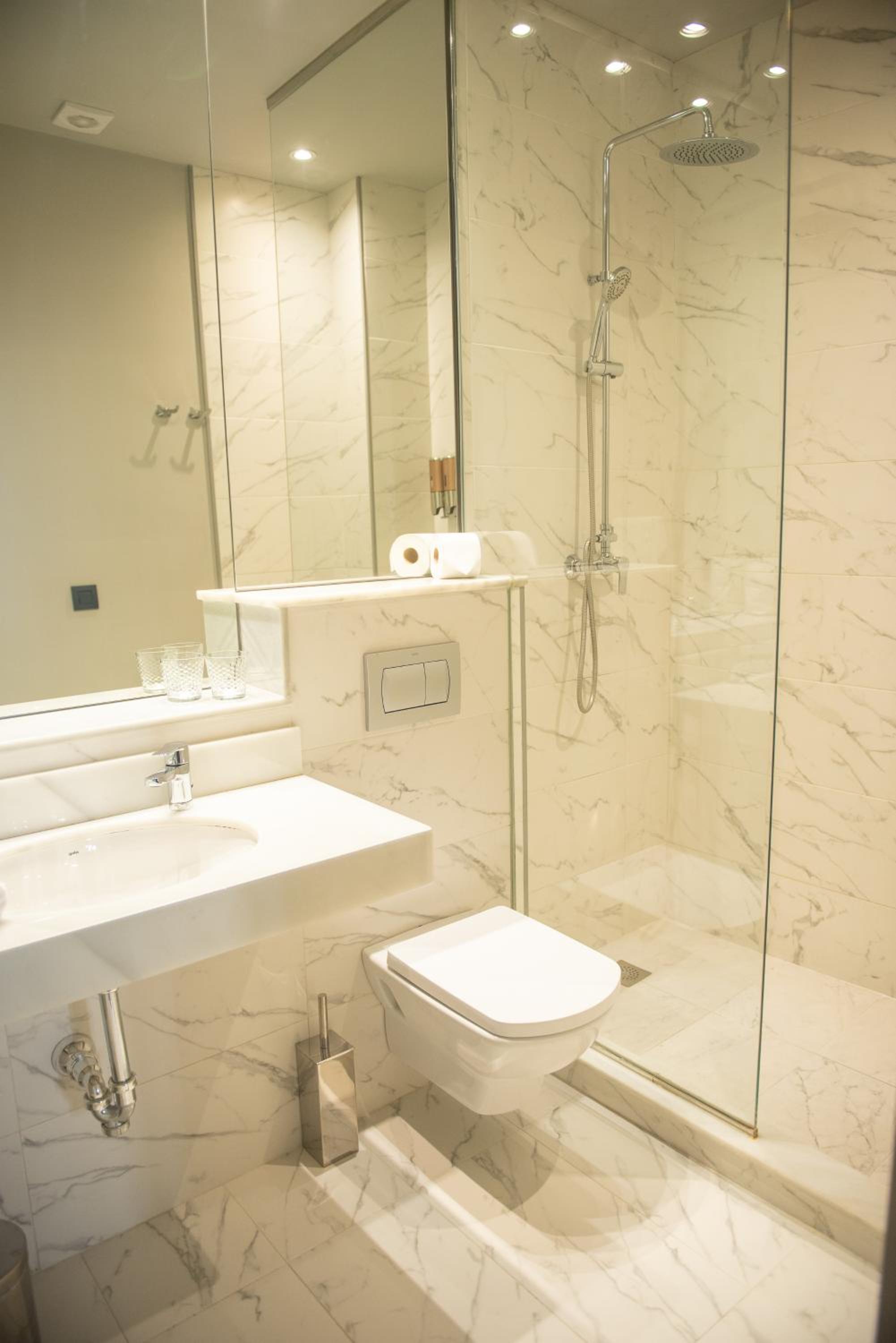 Lovely decoration. Charming boutique hotel. Very central.. Healthy sit down breakfast with local products. Coffee machine in the room. It's a small hotel (16 rooms I think) and feels very safe.