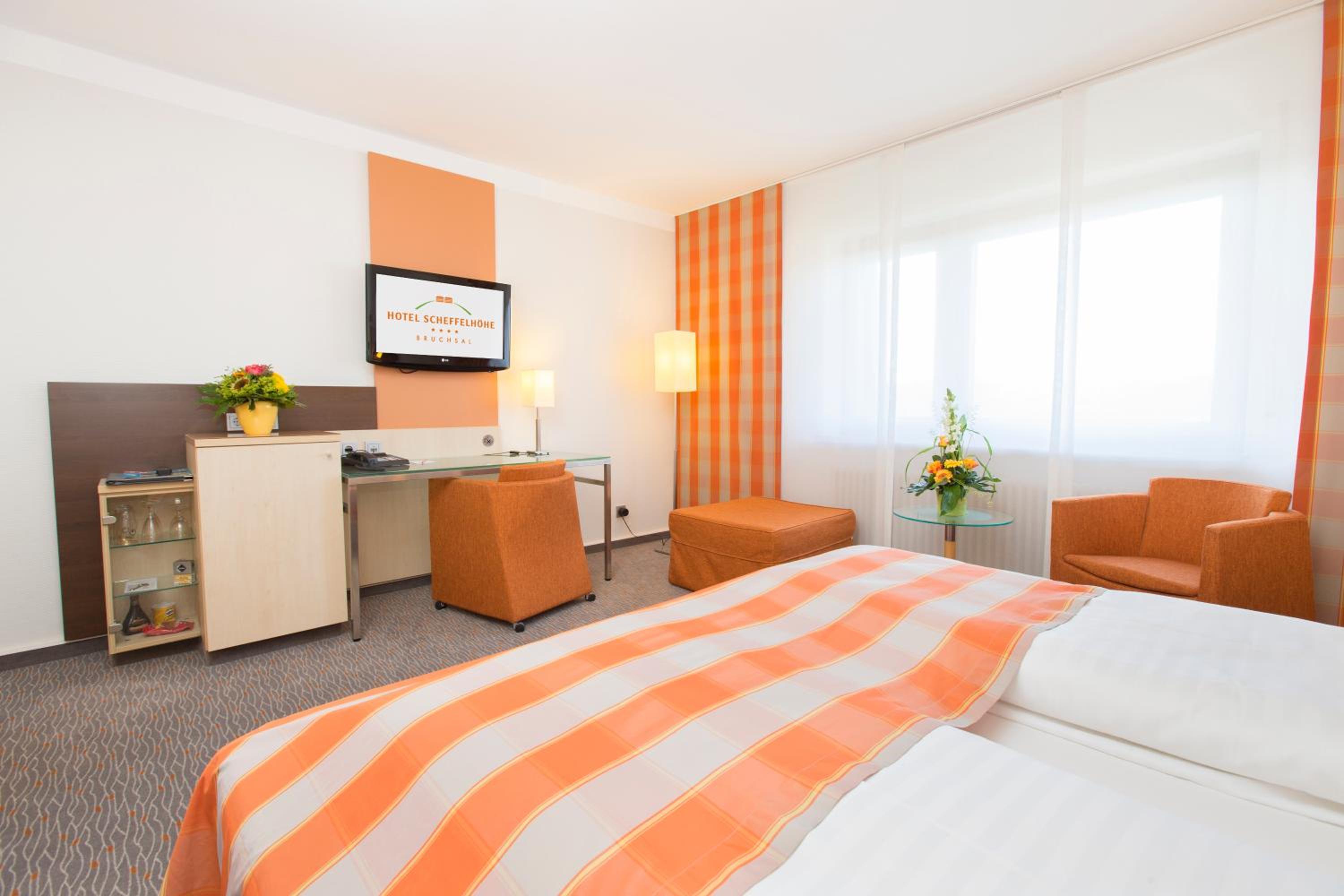 Experience a tranquil stay in the heart of Bruchsal at the 4-star Hotel Scheffelhöhe. Indulge in modern rooms equipped with cable TV, a minibar, and a work desk. Wake up to picturesque views of the town and the Kraichgau Hills right from your window.