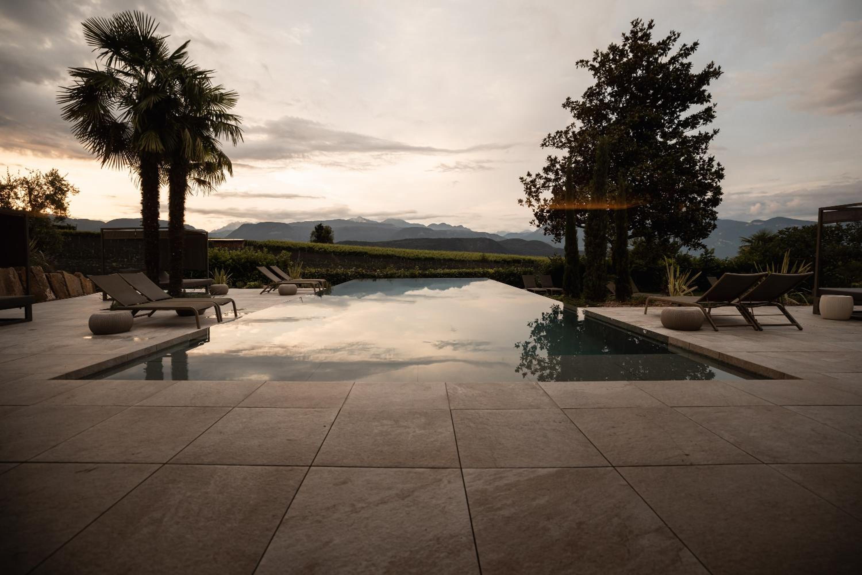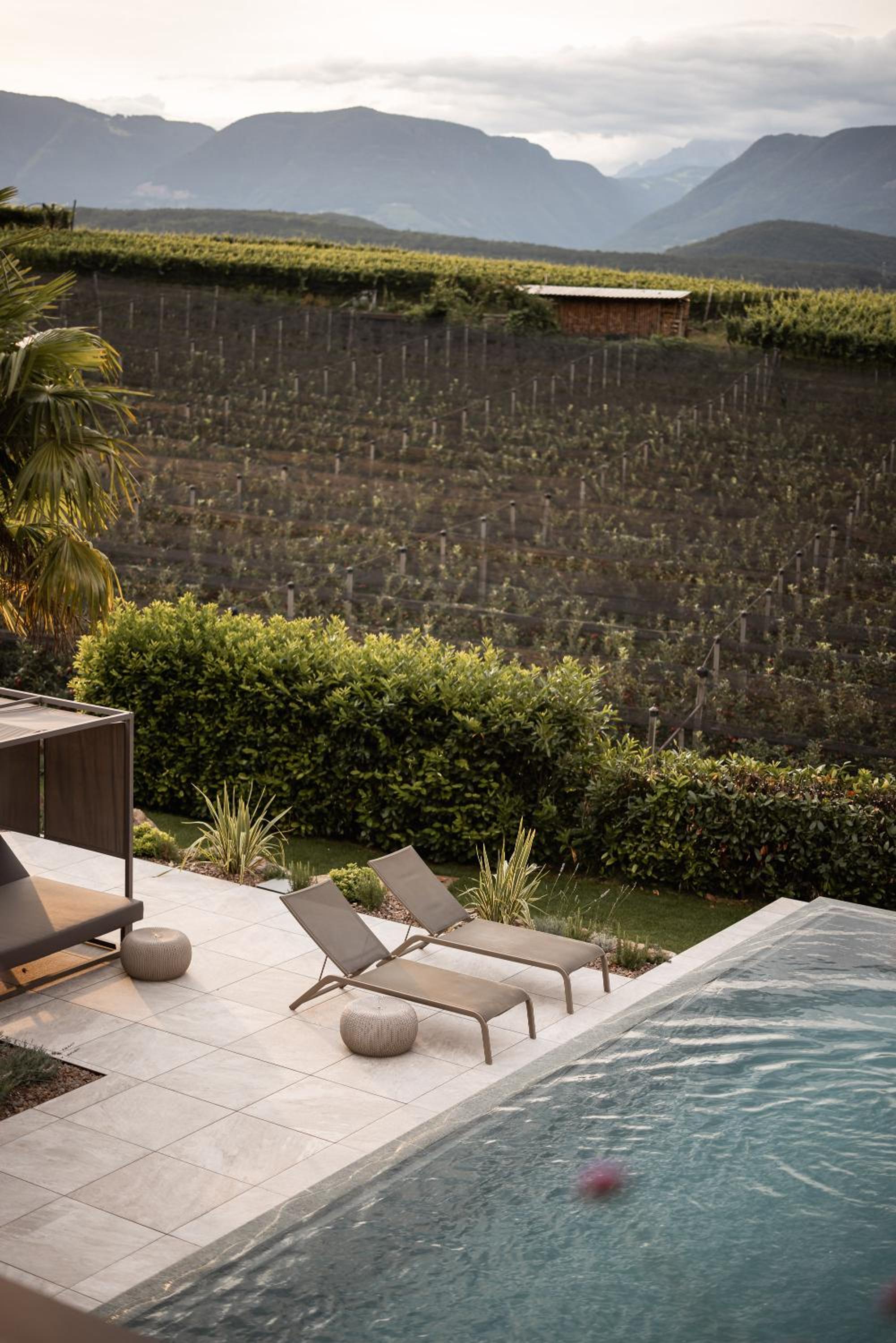 Die Lage war top, inmitten von idyllischen Weinreben, ganz im Grünen und von Strasse (auch wenn es natürlich welche hat) hat man kaum etwas gehört noch gesehen. Der Aussenpool und die Liegewiese sehr schön mit genügend Platz, plus auch Innenpool und Saunas mit Entspannungsraum vorhanden, sowie gratis Trinkstation für Tee und Wasser. Das Frühstück war sehr fein, mit einem eher kleinen Buffet aber vielfältig und feinen Sachen immer im ähnlichen Stil, jedoch täglich variierenden Eierspeisen und Smoothies, die man ab Karte (aber im Preis inklusive) bestellen konnte. Das Personal alle sehr freundlich, man fühlte sich sehr willkommen und verwöhnt, die Atmosphäre im Hotel sehr ruhig und entspannt. Wir erhielten ein Upgrade auf unser gebuchtes Studio, war super modern und riesig mit hochwertiger Einrichtung. Auch die Parkplatz-Situation war top, grosszügig plus mit Möglichkeit (gegen Gebühr) das Elektroauto zu laden, es hatte mehrer Stationen. Können wir nur weiterempfehlen, wenn man relaxen und etwas herunterfahren will, auch die Region rundherum ist sehr schön und bietet viel (nach Bozen ca. 20min mit dem Auto)