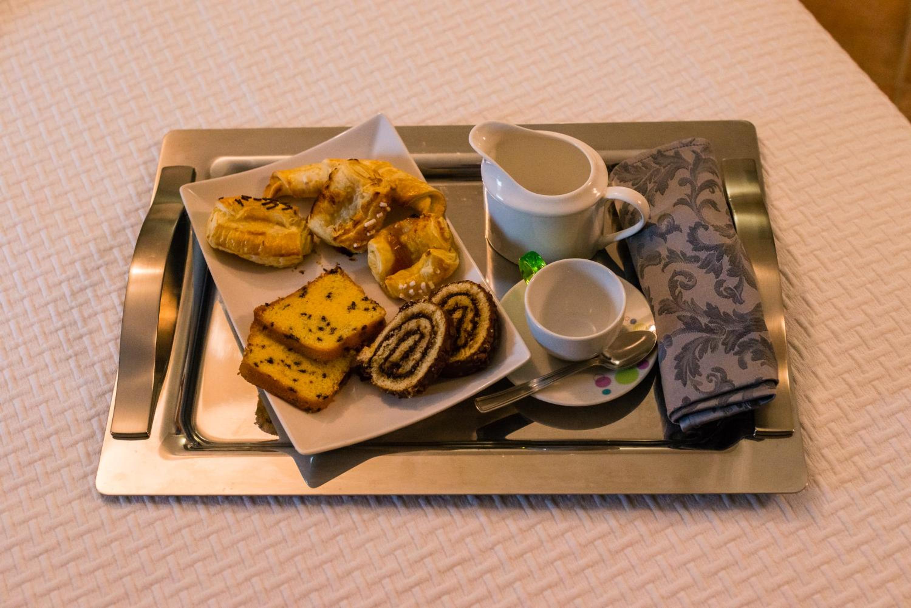 La prima colazione buonissima, con prodotti freschi e fragranti.
