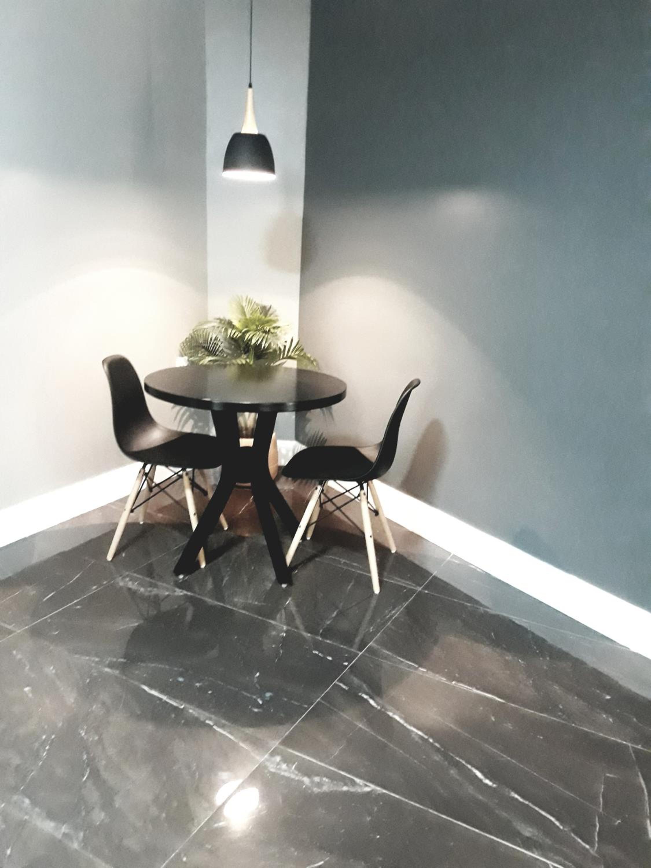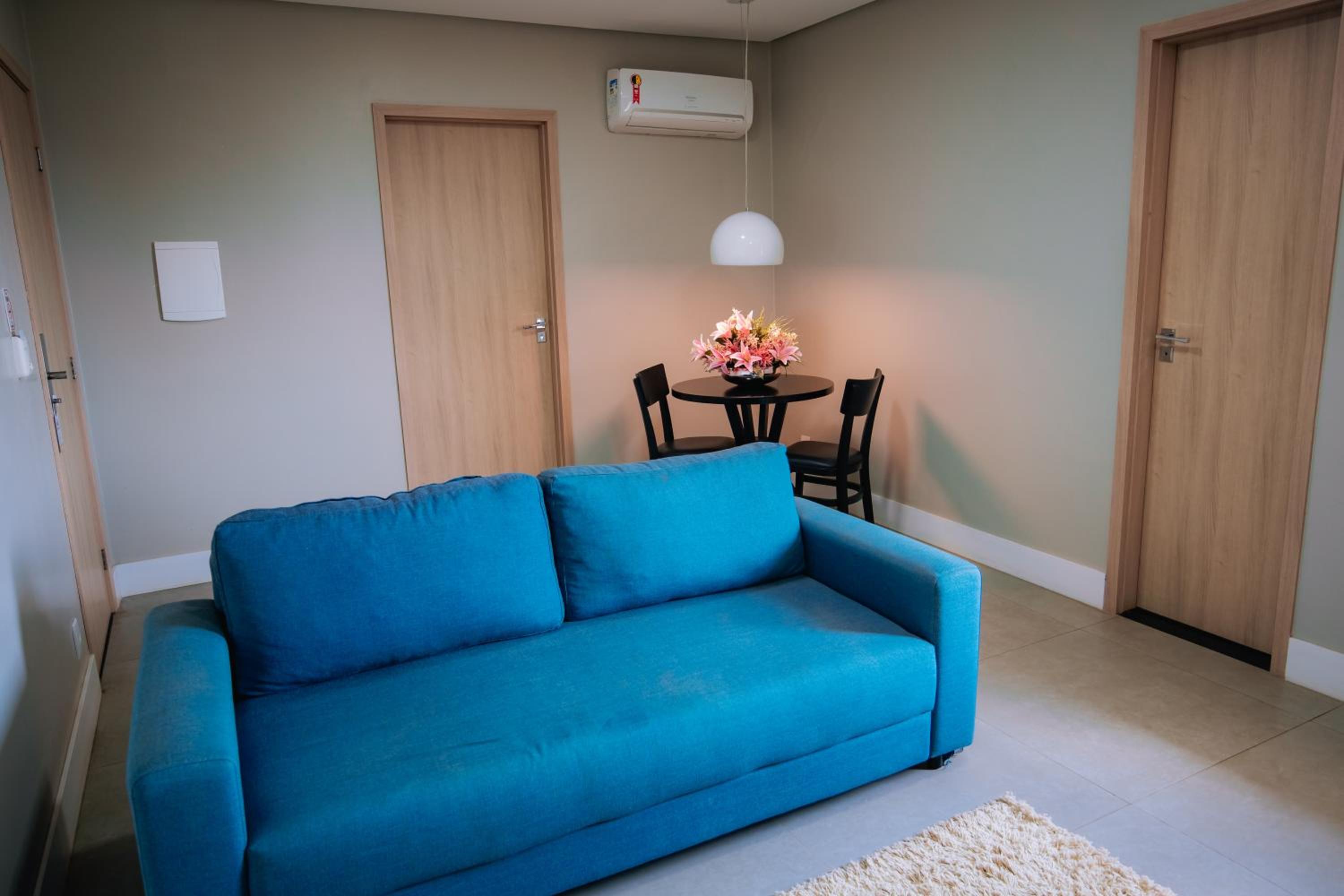 Apartamento amplo, Café da manhã satisfatório, mobiliário adequado e suficiente