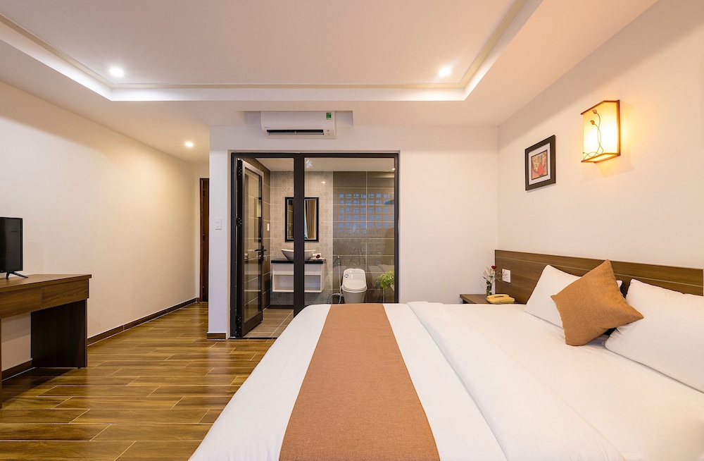 By far the best hotel we stayed at during our vacation in Vietnam. The staff went out of their way to make sure we were comfortable and enjoyed our stay. The hotel room was spacious, clean, and very modern. Loved the shower! The hotel is on a quieter street (great for sleeping at night), but very quick walk to the Old Town. The hotel also had free bikes if you wanted to visit the beaches or explore other areas of Hoi An.