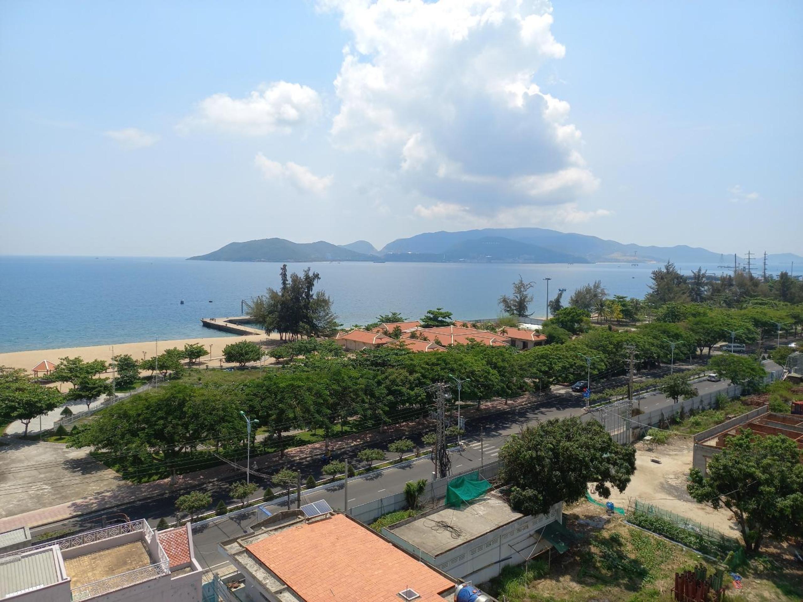 Nhà nghỉ có view thành phố và biển, bước vài bước chân là ra biễn, giá cả oke hợp lý