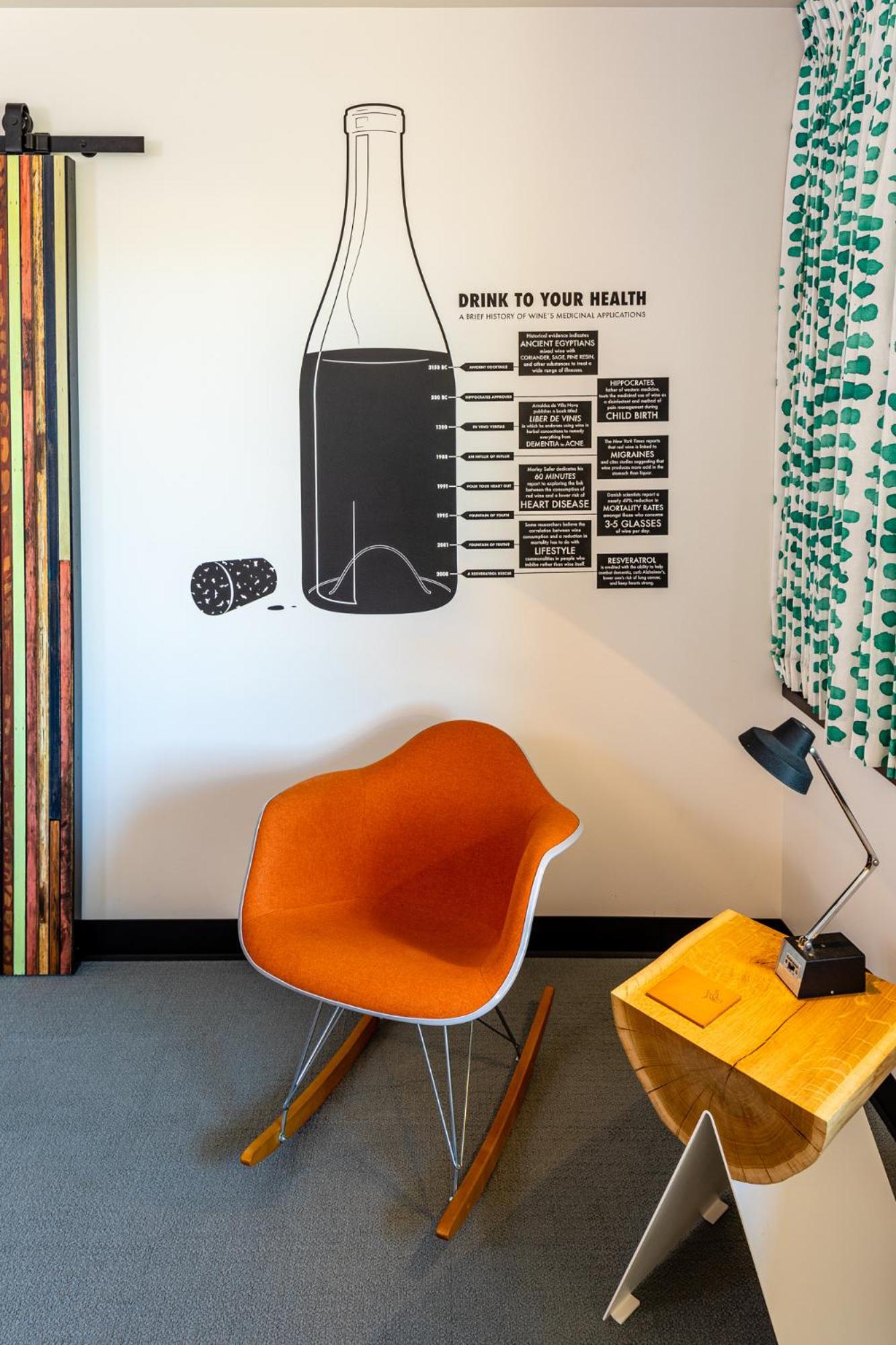Clean, convenient, and artsy. Several items in the room we're custom made, they spent a lot on this remodel or upgrade