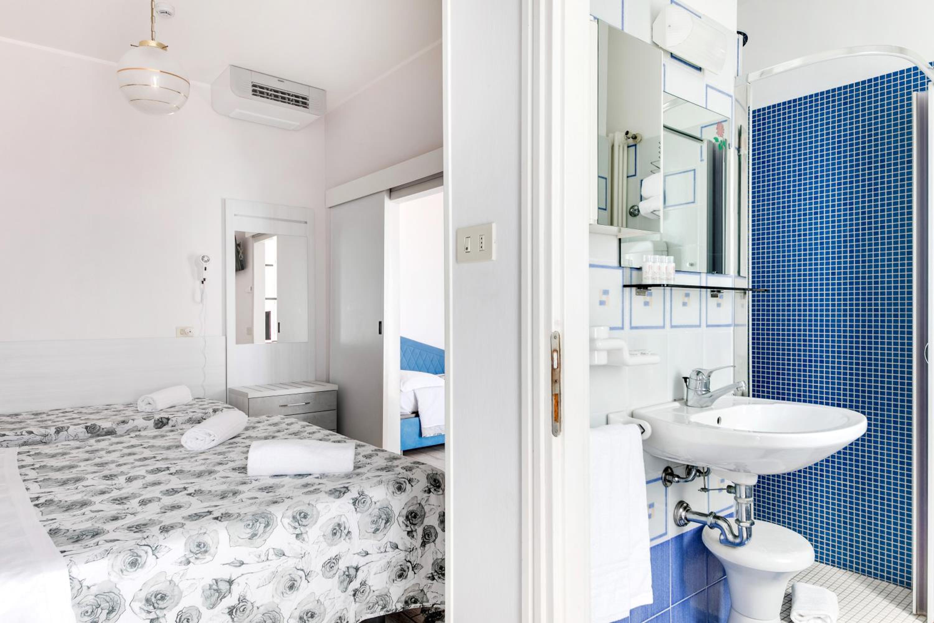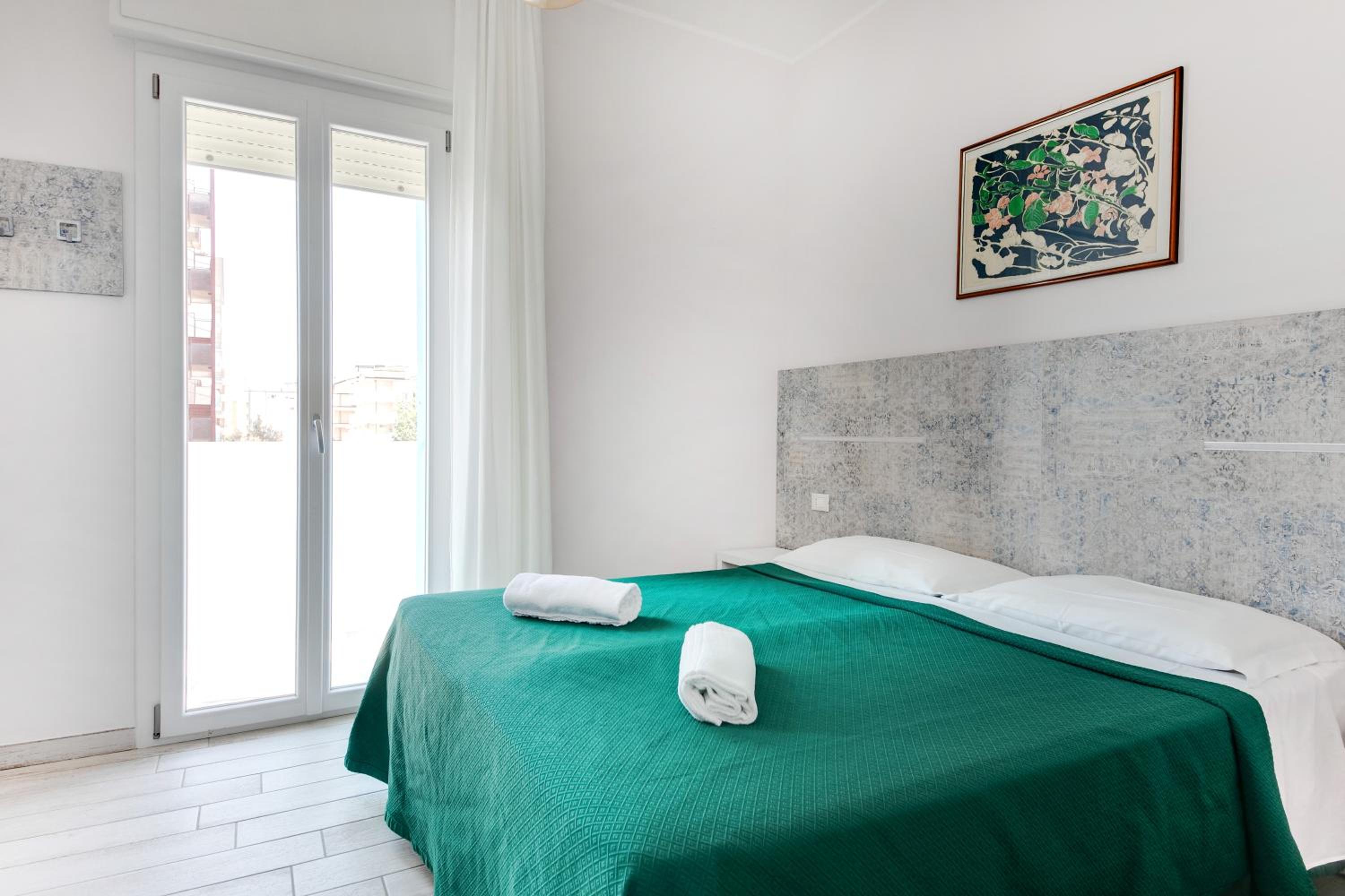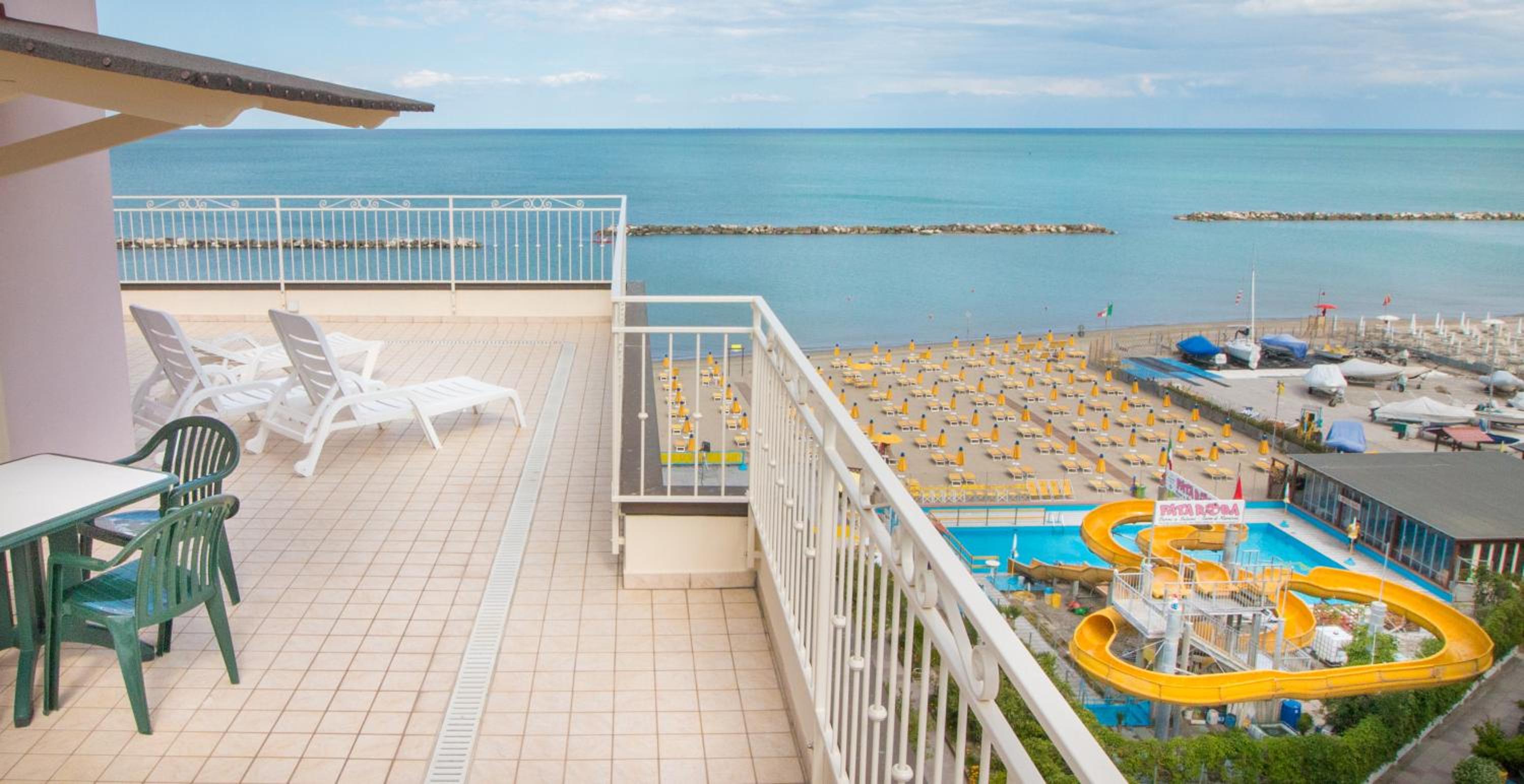 Widok na morze, Hotel przy samej plaży. Przemiła obsługa. Bezpieczny i oświetlony, choć ciasny parking. Winda. Pyszna piadina i lody w pobliżu. Zniżka na leżaki na plaży.