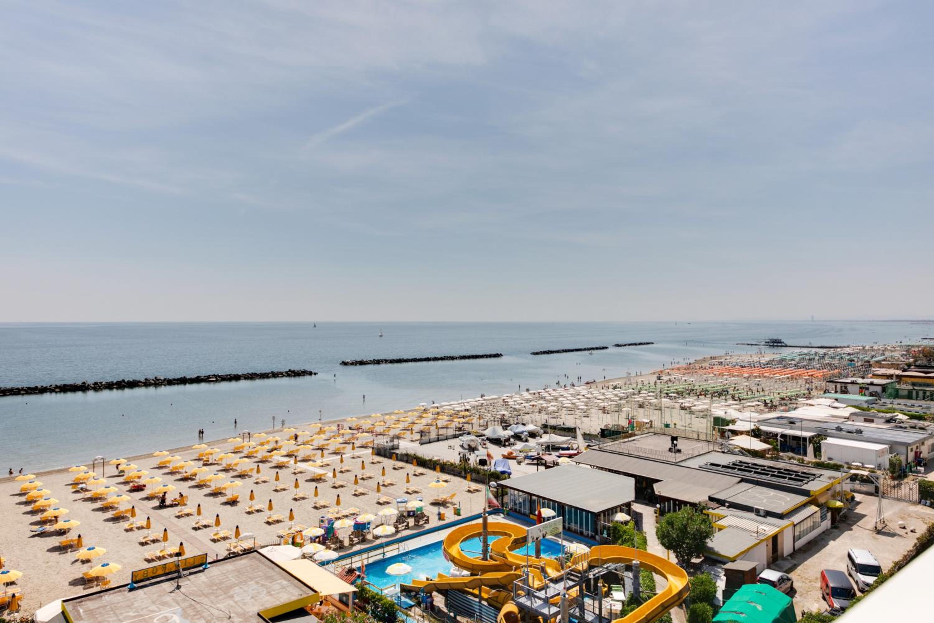 Locația este frumoasa,jos este plaja ,care este privata ,plătești 15 euro pe zi și primești o umbrela și două șezlonguri,mai ai acces și la topogane ,că și poziție este super ok ai totul aproape ,a fost curat ,au schimbat prosoapele o dată în 4 zile dar a fost super ok că erau multe și chiar nu le-ai consumat.